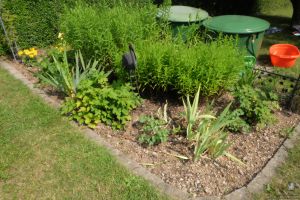 Auf dem Weg nach unten sehen wir hier und da liebevoll angelegte Beete, eines ist rund und ist wie ein Farbkreis mit Iris bepflanzt. Eigentlich hätte ich mir den schon im Mai ansehen wollen, klappte leider nicht.  Aber im nächsten Jahr!! Als wir uns dann auf den Heimweg machten (die Zeit verging wie im Flug), musste ich daran denken, wie viel Zeit und Kraft dazu gehört, dieses Grundstück zu pflegen! Allein schon die Pflanzen mit dem nötigen Wasser zu versorgen….Hut ab vor Barbara und Holger, die sich ihr Gartenparadies mit viel Liebe und Enthusiasmus geschaffen haben und der Natur genügend Platz und Vielfalt bieten!