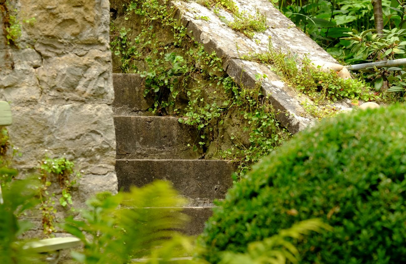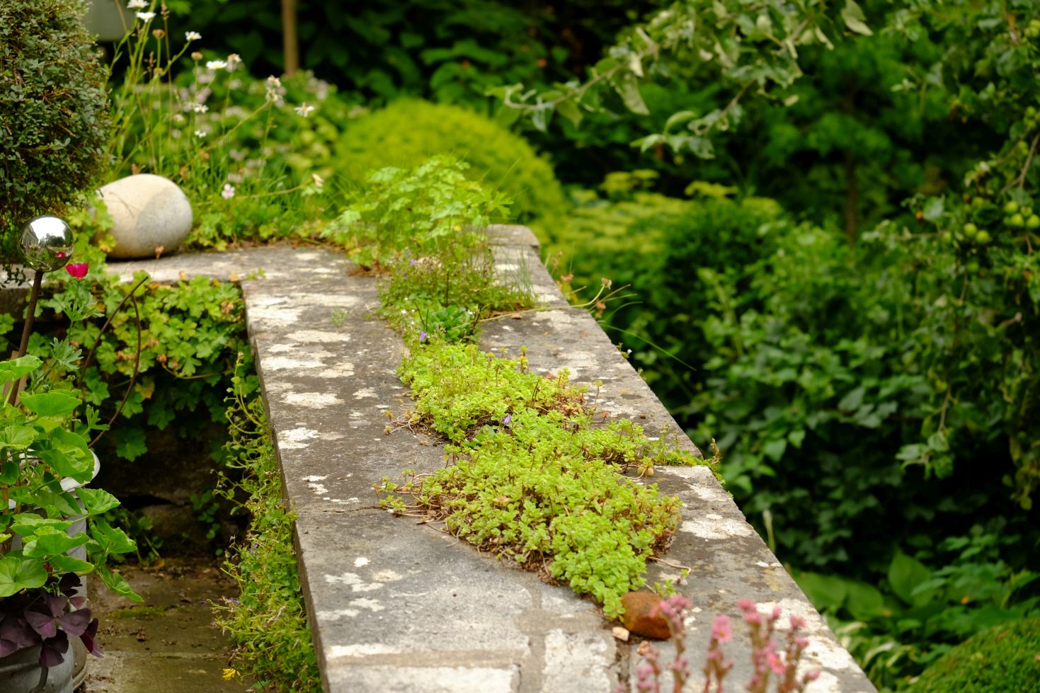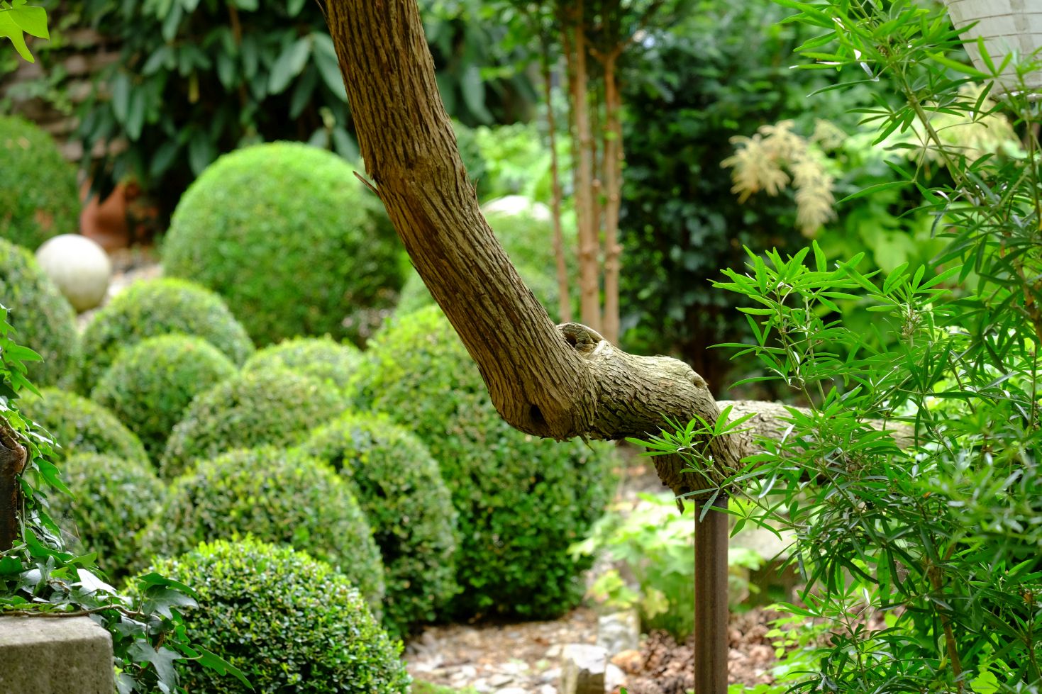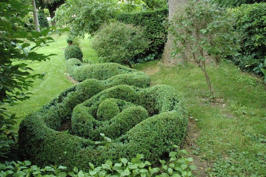 Überall gibt es zwischen schönen Buchskugeln Vogeltränken, Vogelhäuschen, kleine Teiche…