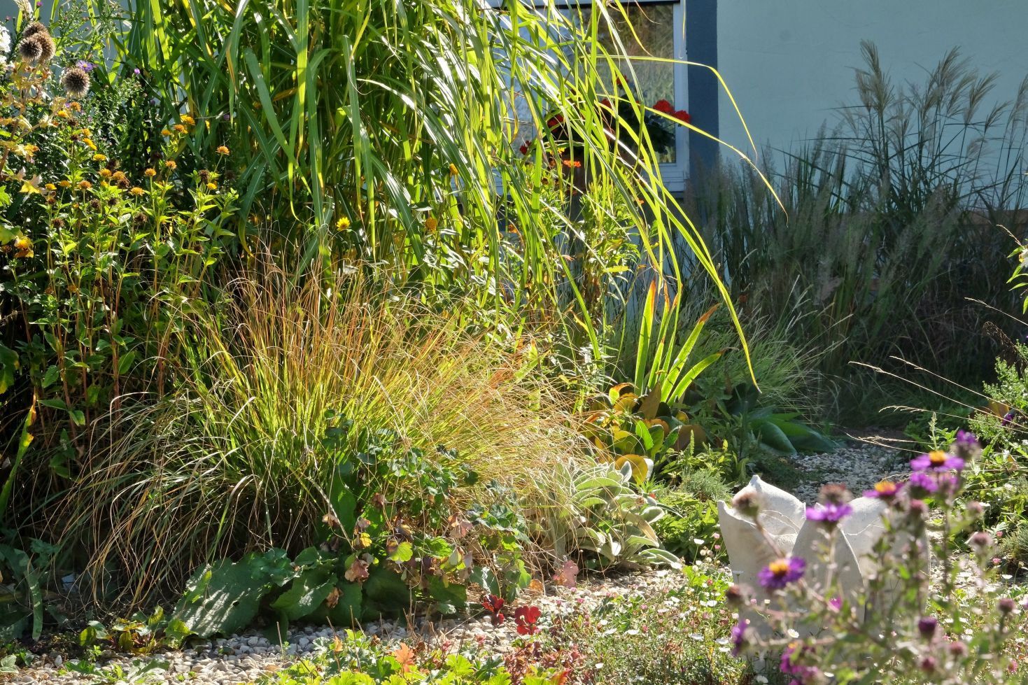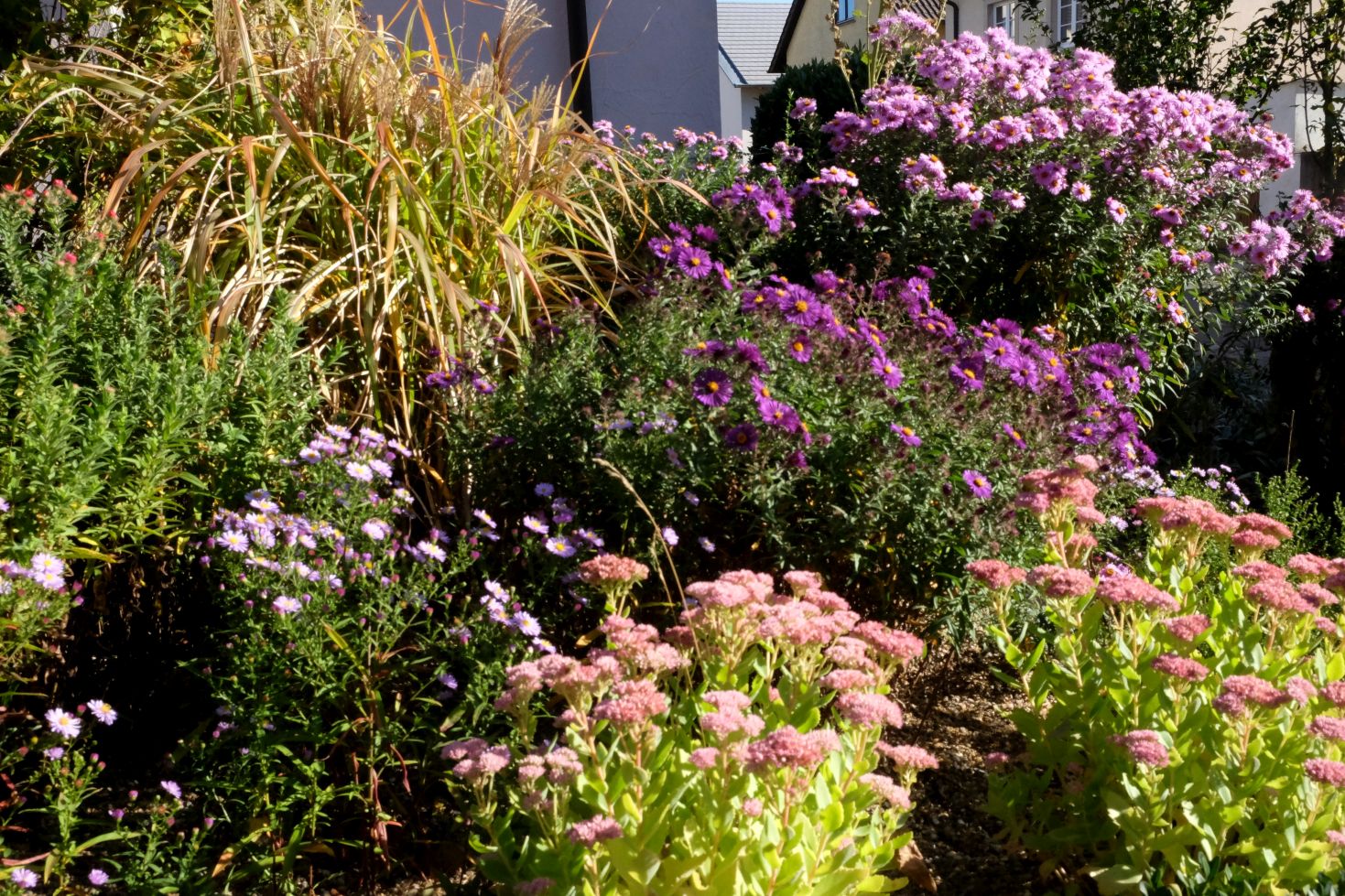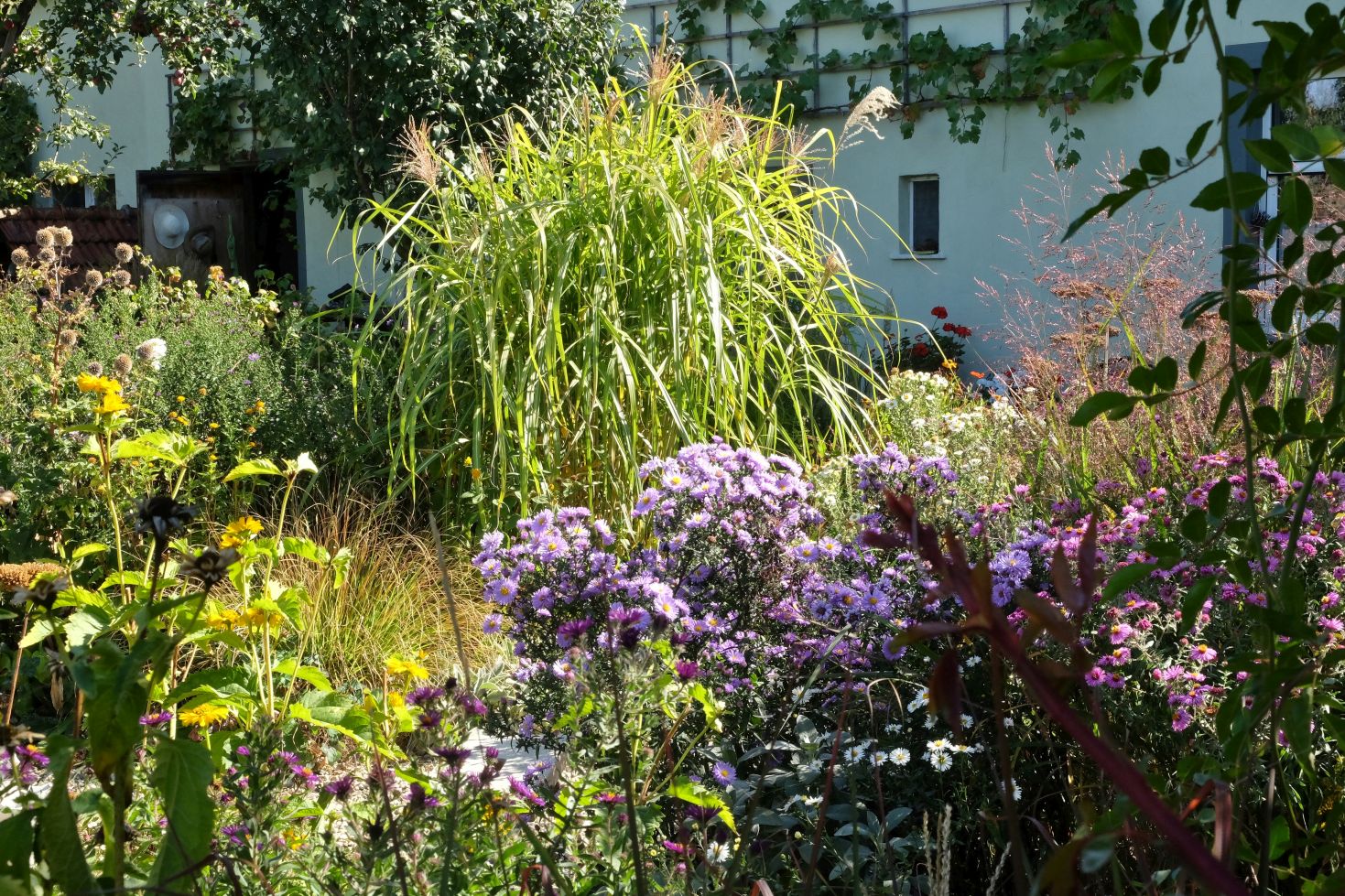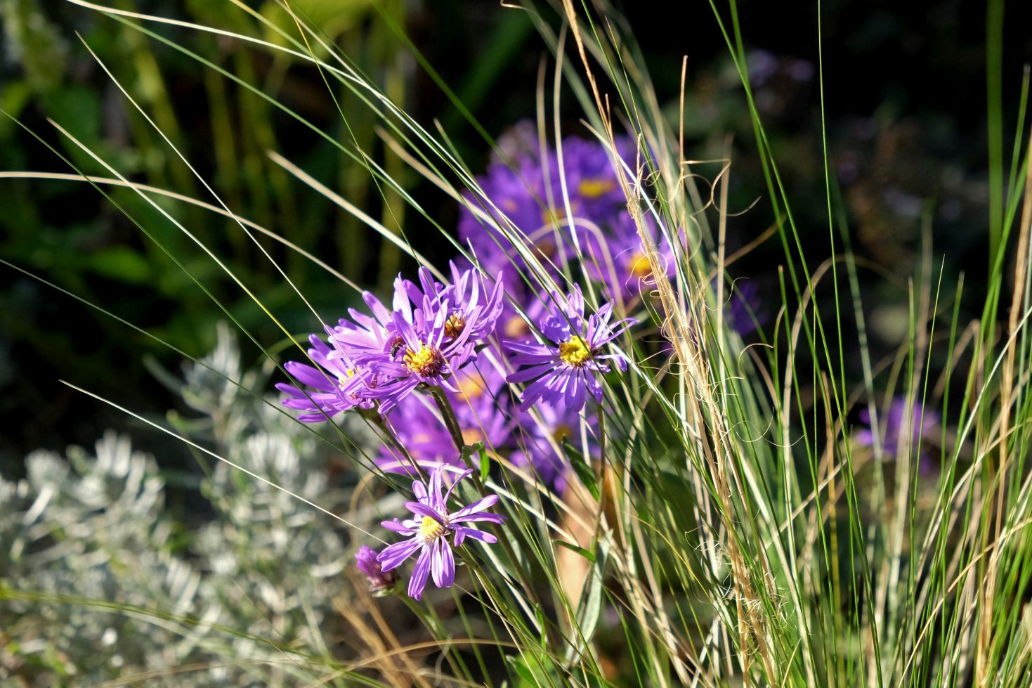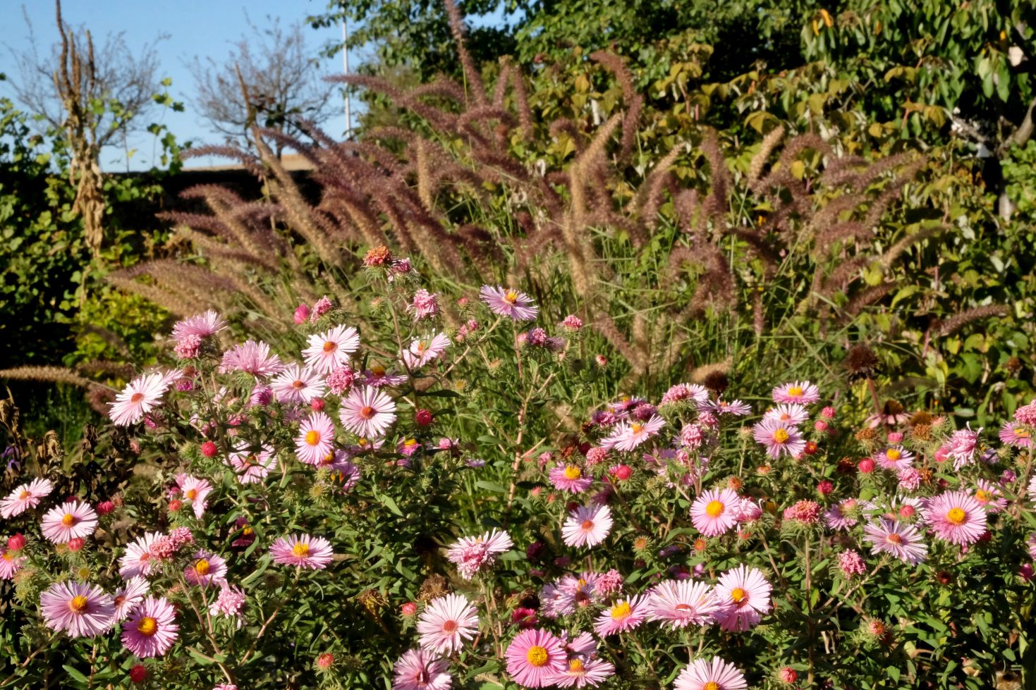 Jetzt genießen wir aber zunächst noch das Farbspiel der Astern und die wunderbaren Gräser ….