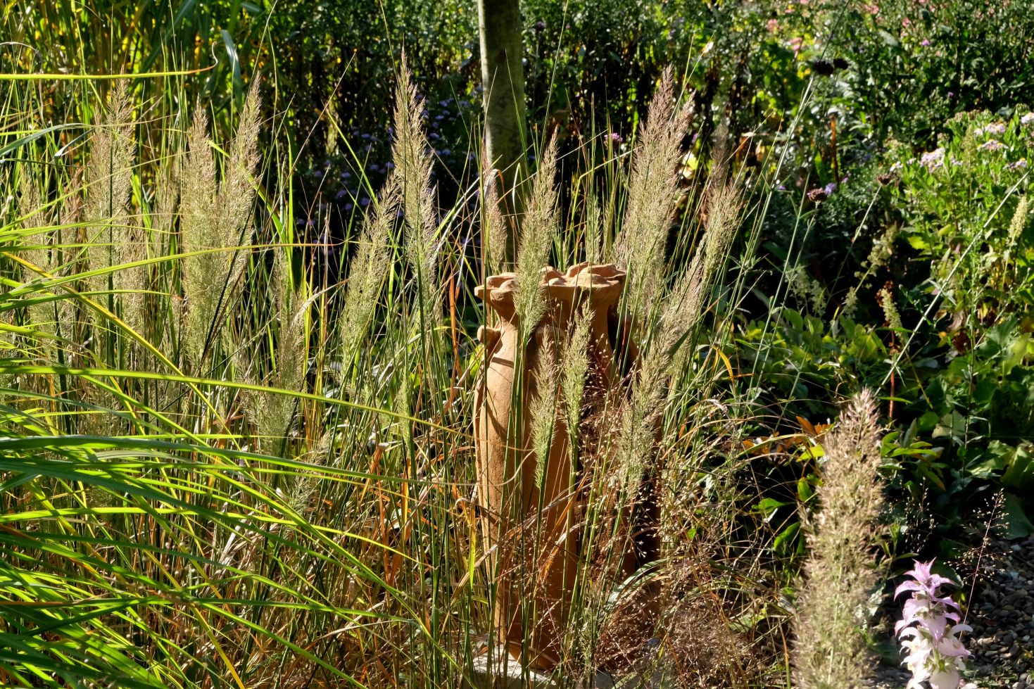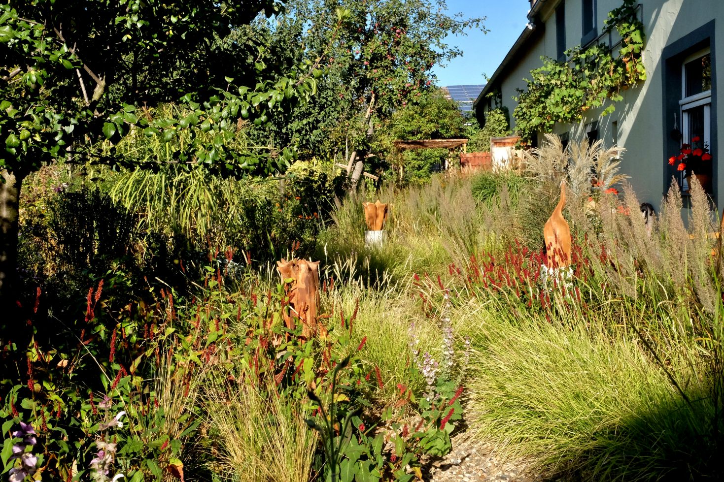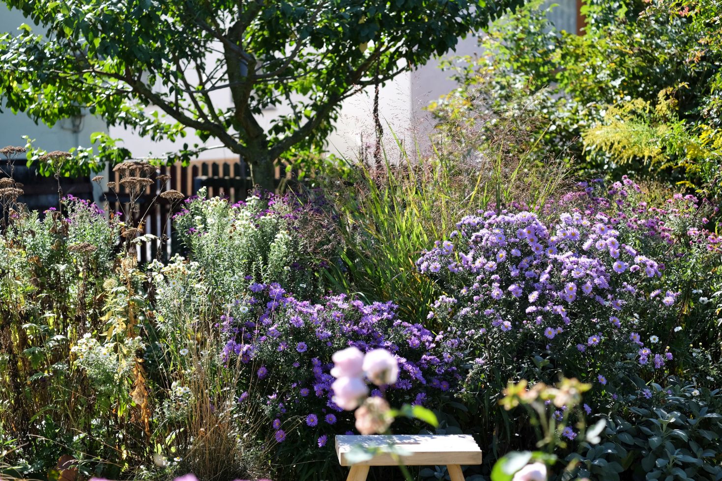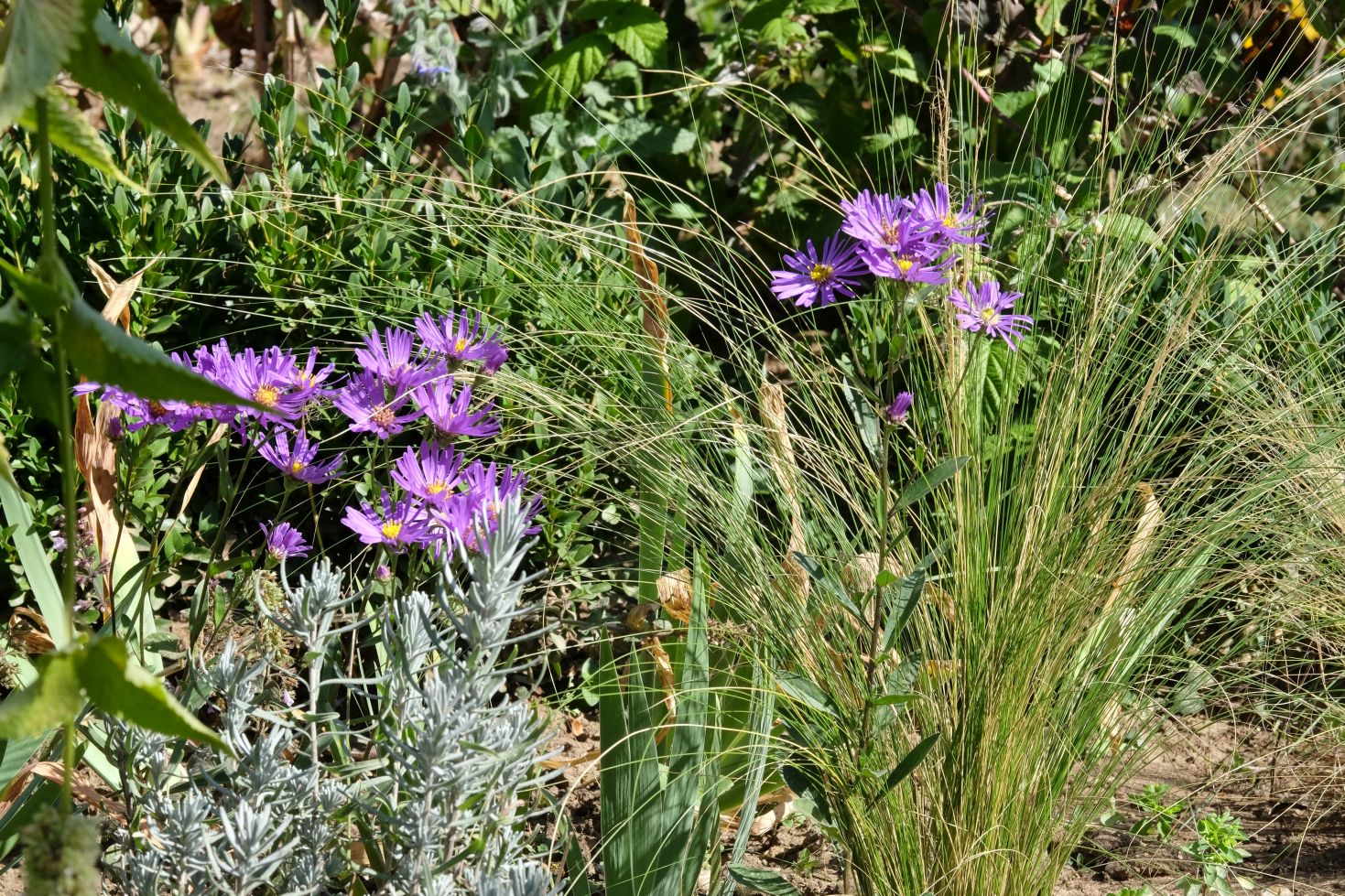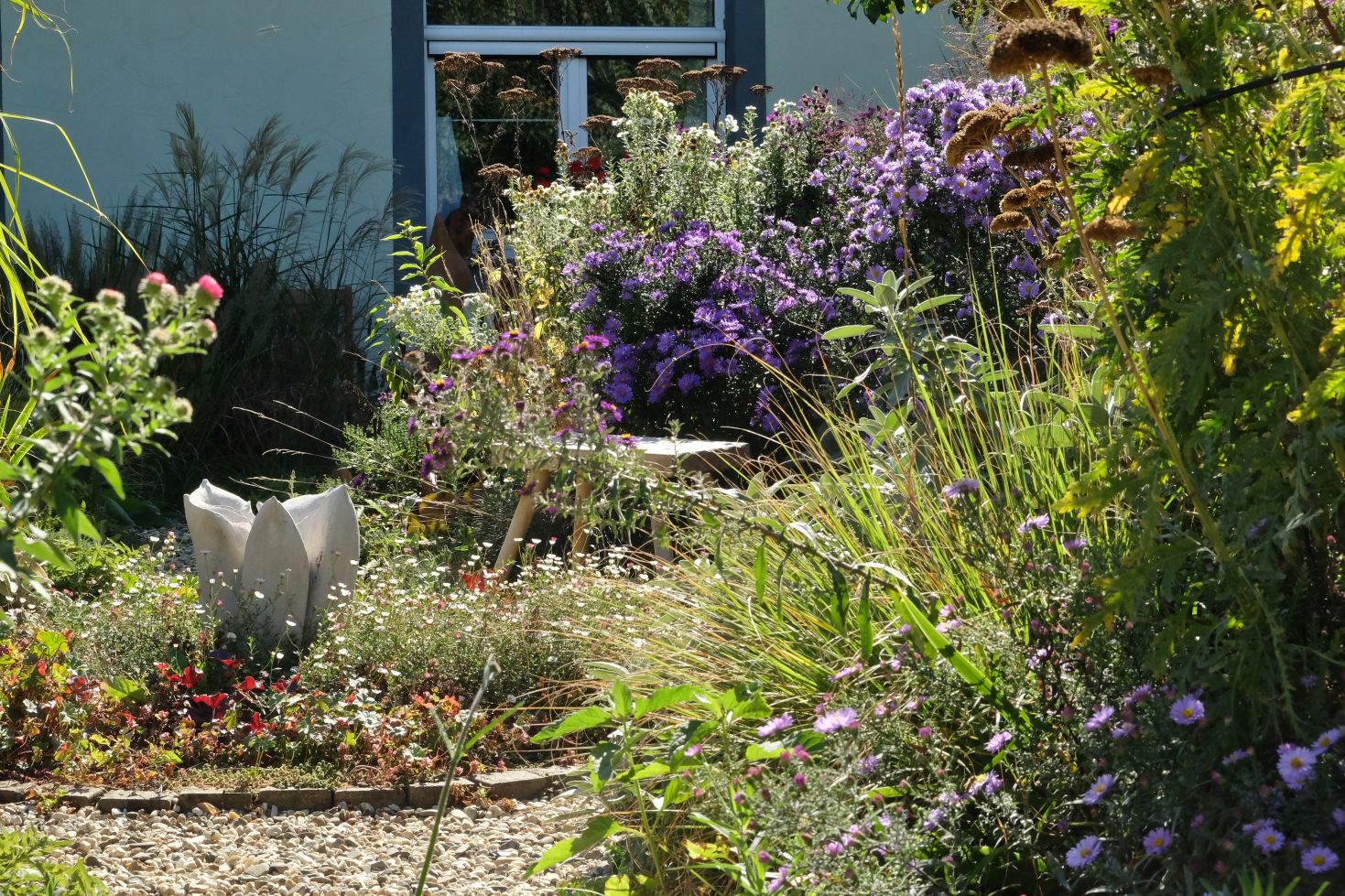 Jetzt genießen wir aber zunächst noch das Farbspiel der Astern und die wunderbaren Gräser ….