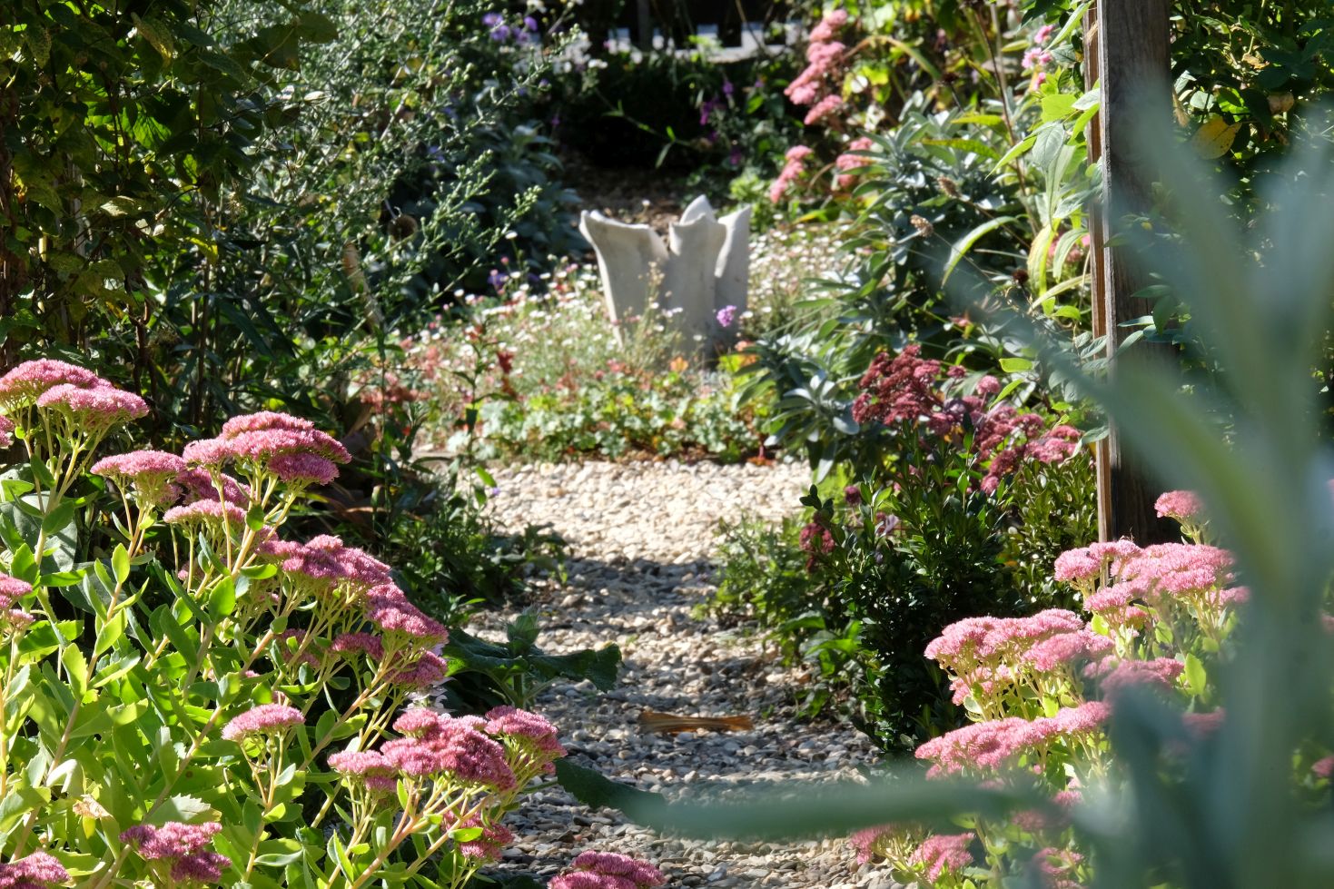 Jetzt geht es schnell….die Tage werden kürzer, die Nächte kälter und in den Morgenstunden gibt es hier und da schon Bodenfrost! Regen wäre da schon besser. Mit den Arbeiten in den Staudenbeeten beginnen wir erst im Oktober – im Urlaub haben wir uns dazu schon einige Notizen gemacht. Im Herbst ist dann die beste Zeit für diese Änderungen.
