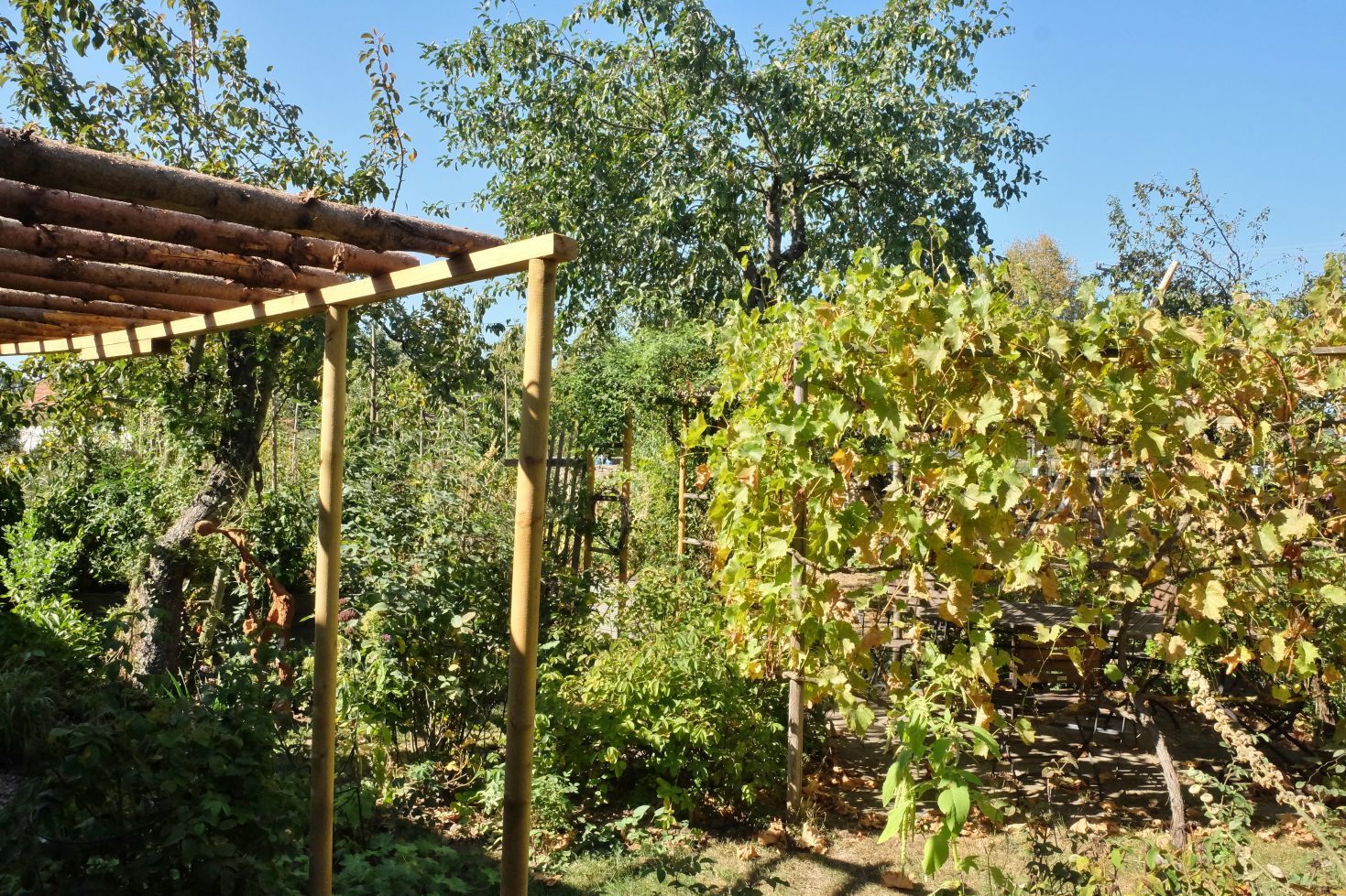 Für die Beschattung der Hortensien hatte Reinhard vor ein paar Wochen eine Pergola gebaut und heute haben wir zunächst zwei Clematis gepflanzt. Demnächst wird noch eine schöne Ramblerrose dazu kommen….