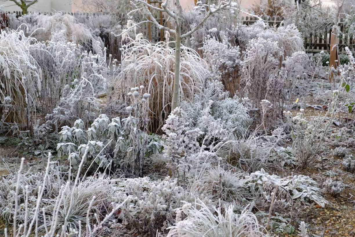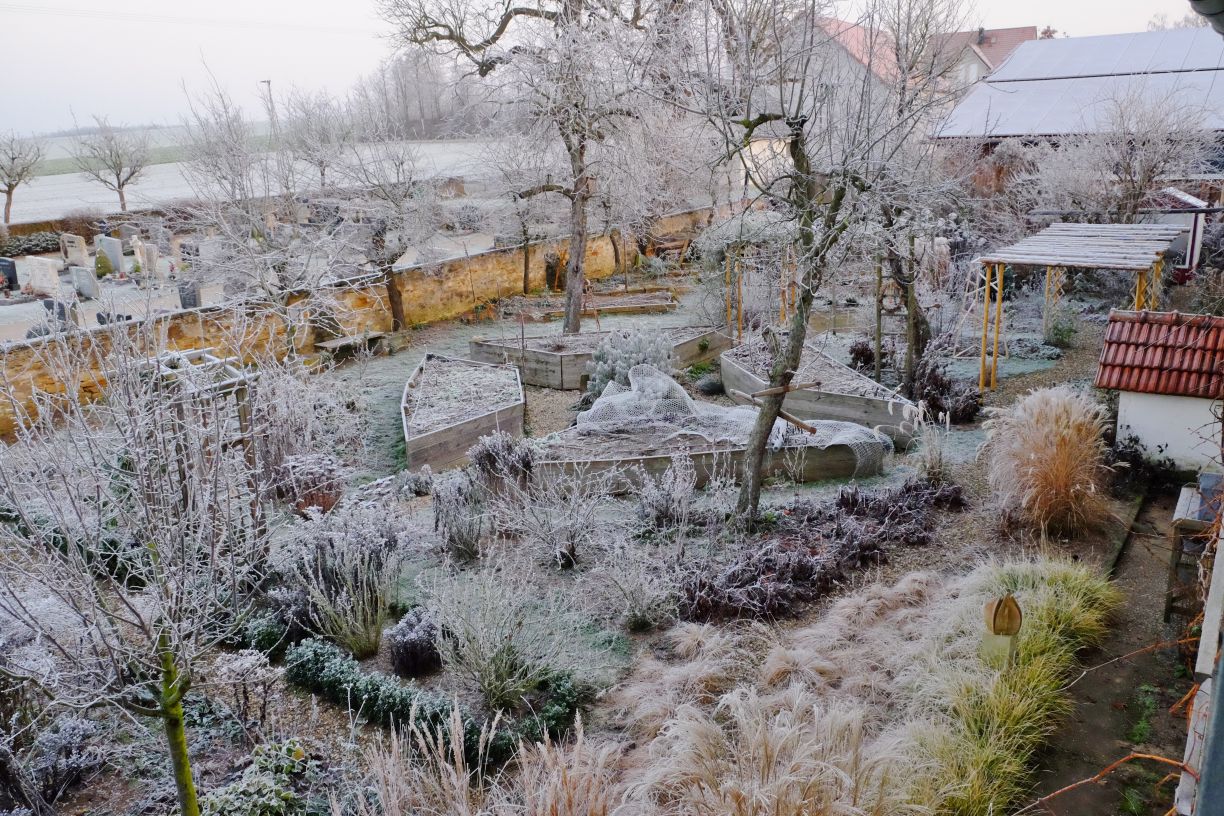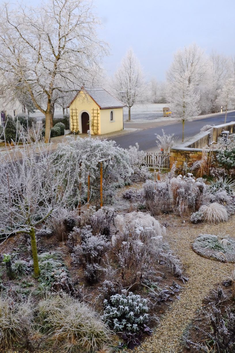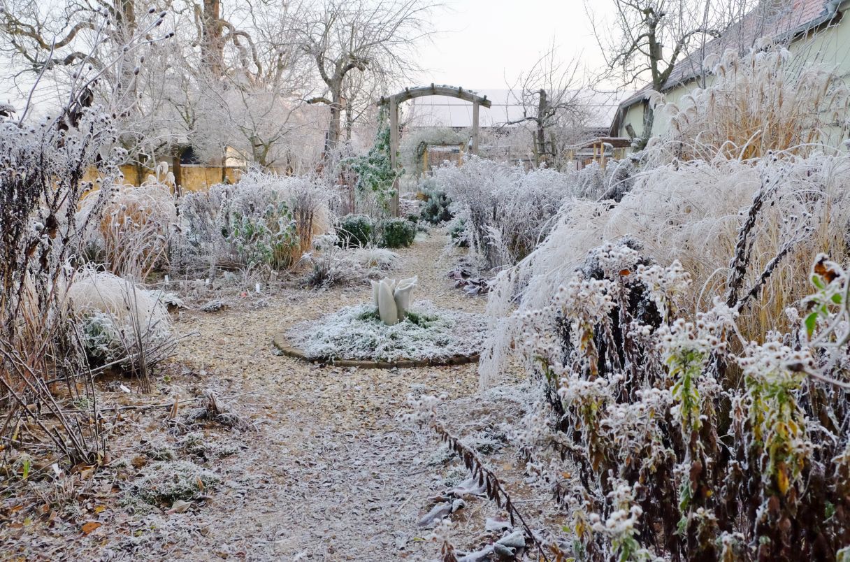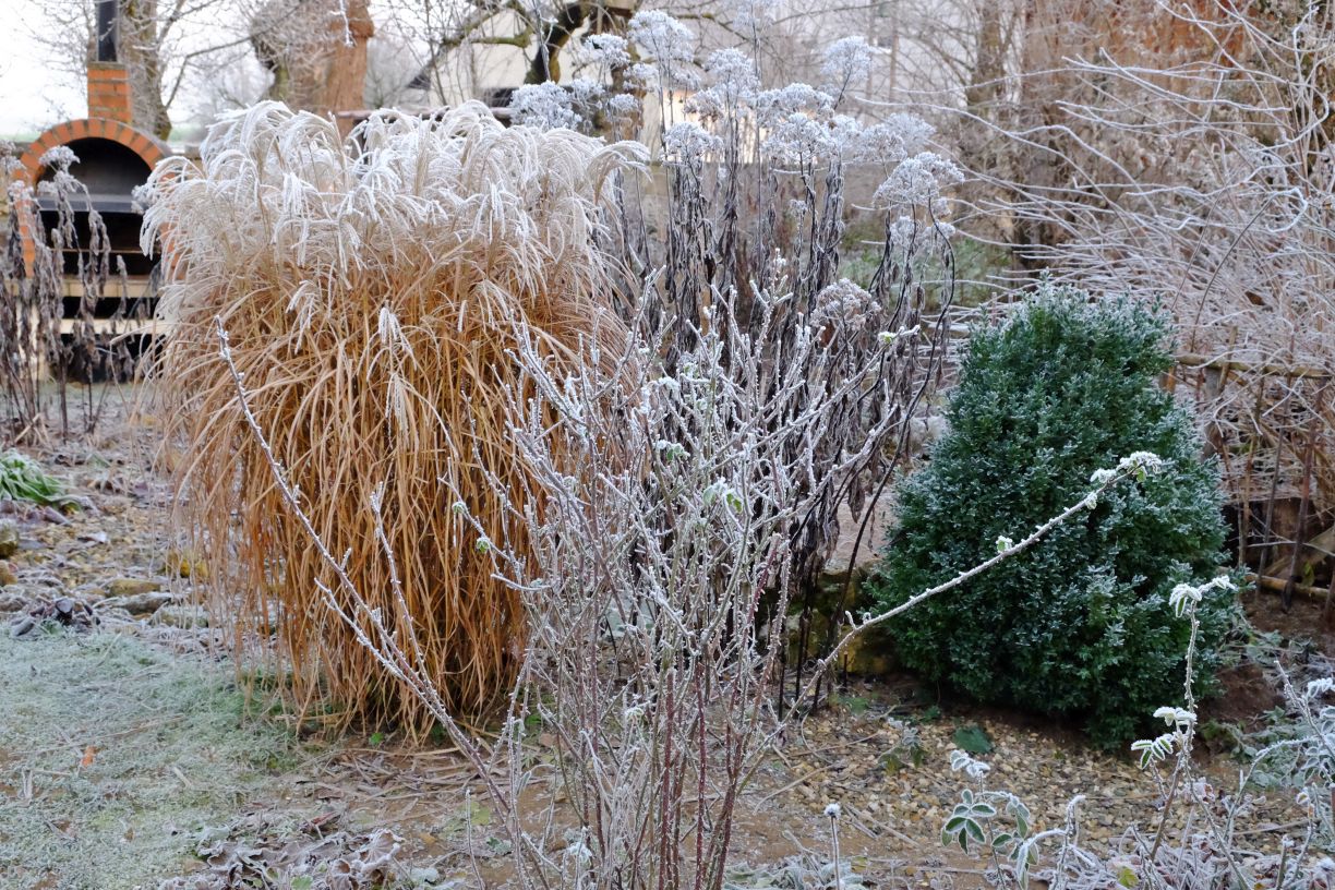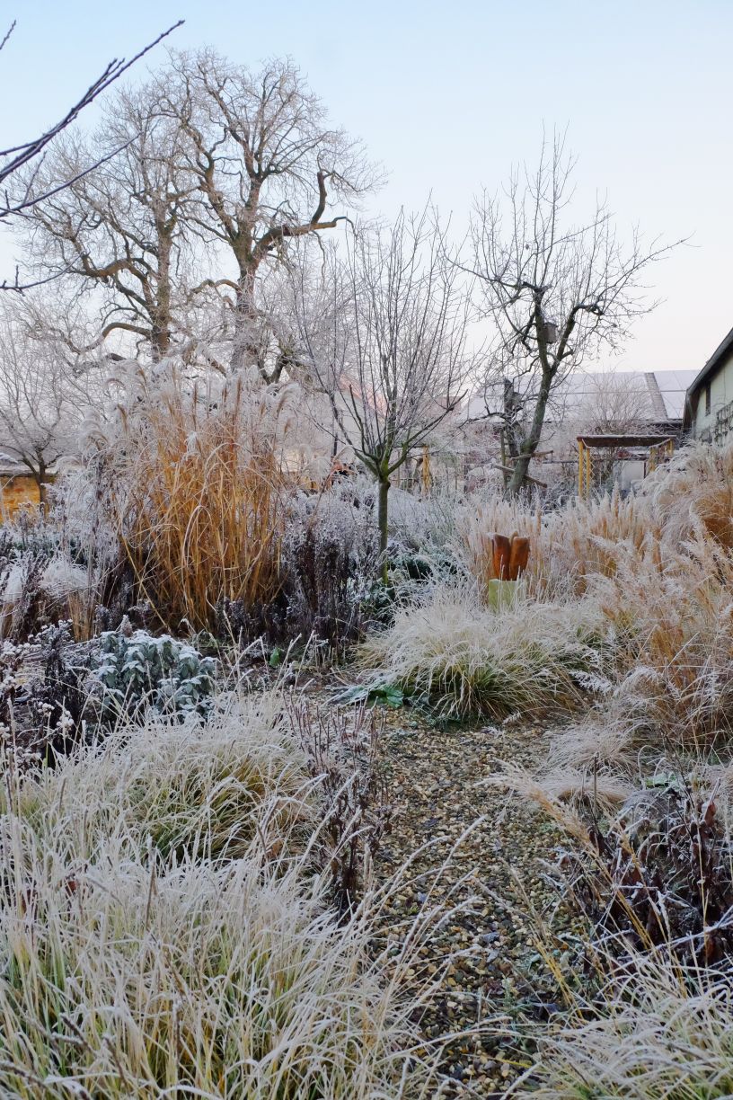 Wie gepudert sehen die Gräser aus, dick gezuckert die Äste. Kann man verstehen, dass viele Gartenbesitzer ihren Garten bereits im Herbst ‚aufräumen‘ und sich damit der ganzen Schönheit des Winters berauben??