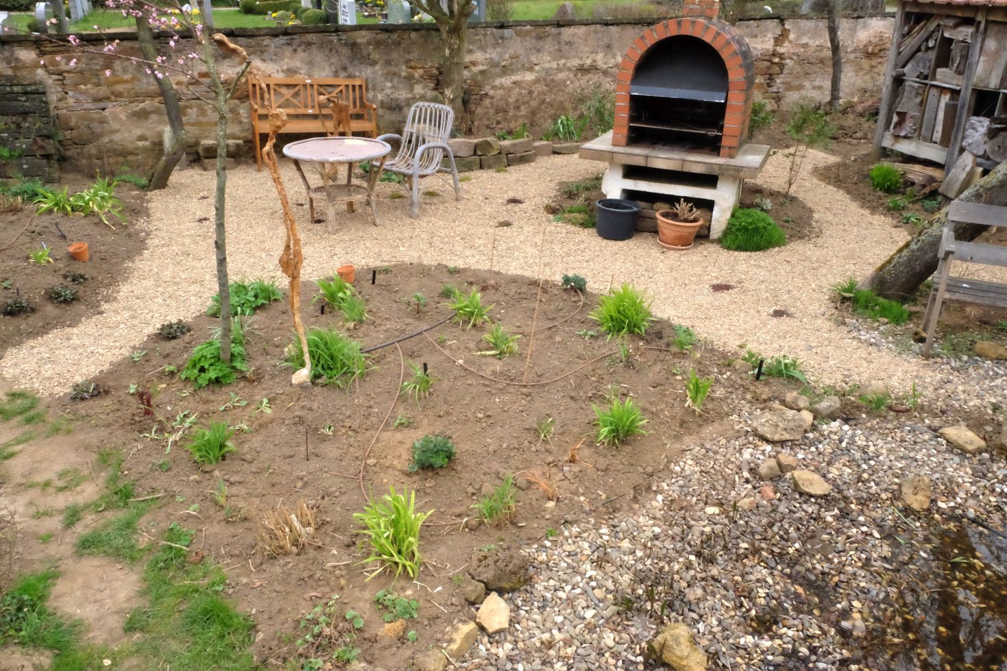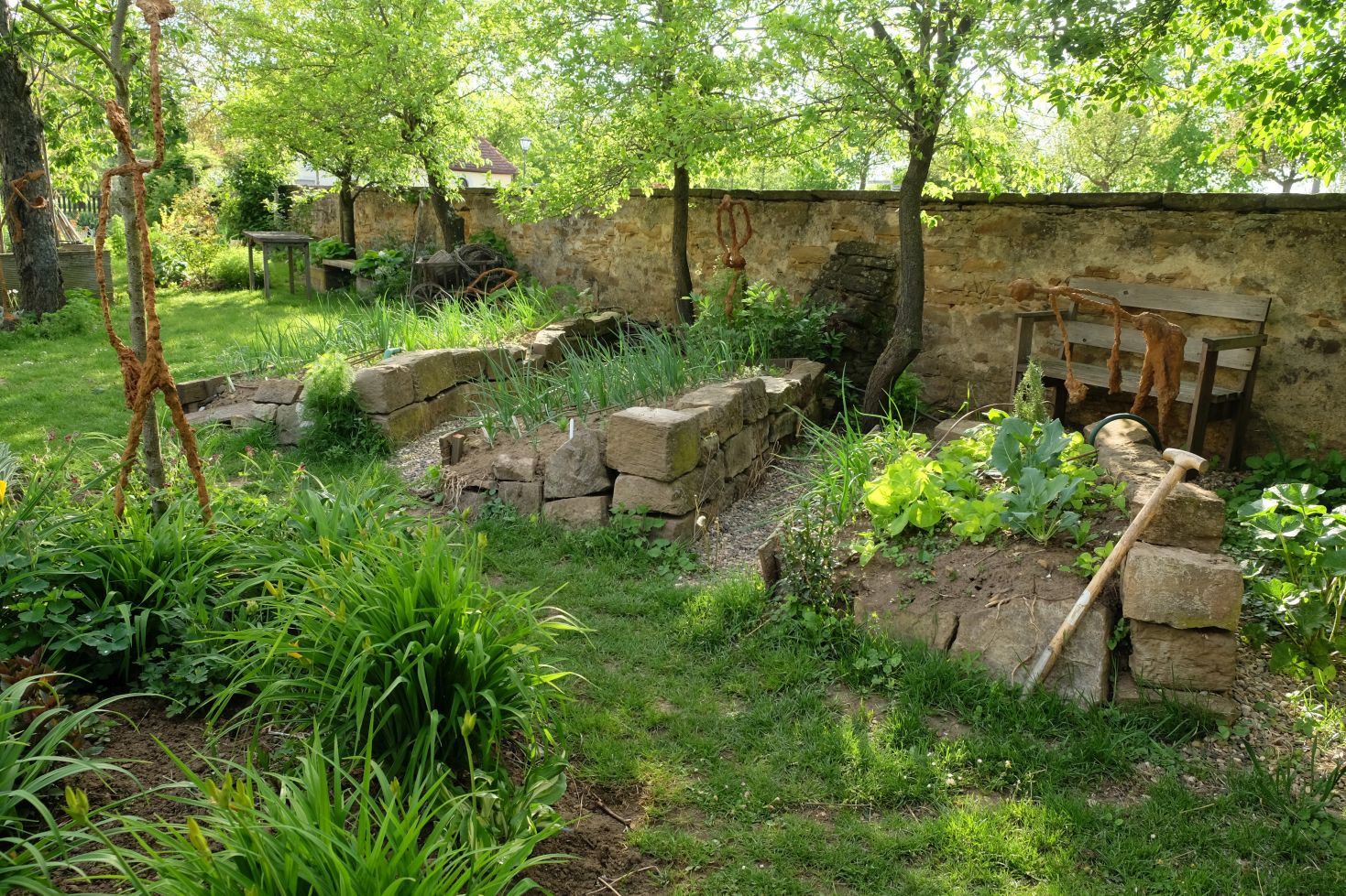 Der letzte Tag im März und wir haben ein neues Beet fertiggestellt! Etliche Taglilien, die wir als Minis eingepflanzt hatten, sind inzwischen groß genug, dass sie einen Platz im Beet verdienen.Das Taglilienbeet am Teich war zu klein geworden, die Hügelbeete an der Mauer nicht optimal für das Gemüse, hinter dem Grill türmten sich die Grassoden und irgendwie gefiel uns die gesamte Gestaltung nicht mehr. So in etwa sah es in 2019 aus: