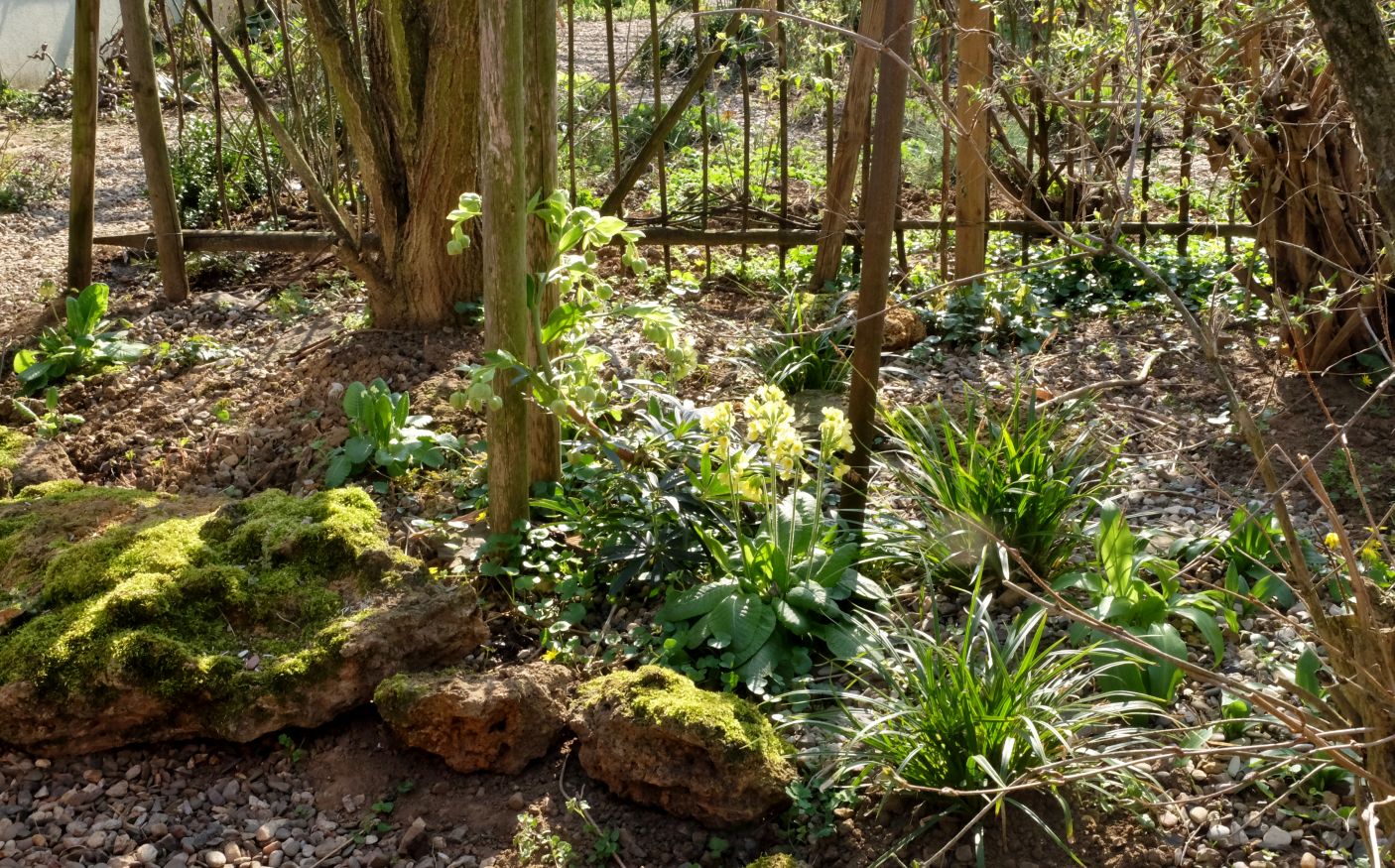 Auch die Bepflanzung im Unterholz am Anzuchthaus, die wir im letzten Jahr angelegt haben, hat sich gut entwickelt…von Himmelsschlüssel über Gräser, Bärlauch etc…….die Hostas brauchen noch etwas Zeit. Im Rosenbeet nebenan blühen die Hyazinthen auf und wir freuen uns auf die kommenden wärmeren Tage. Dann wollen wir endlich den verbliebenen geschundenen Rasen einsäen.