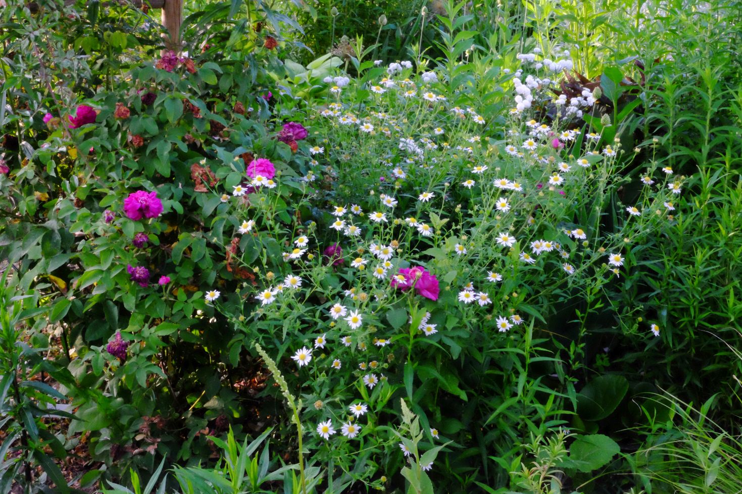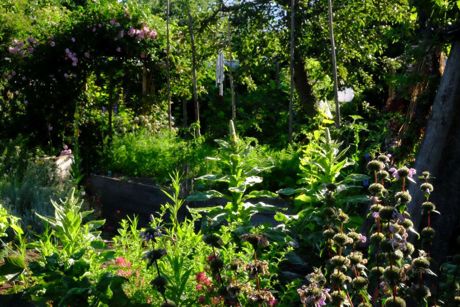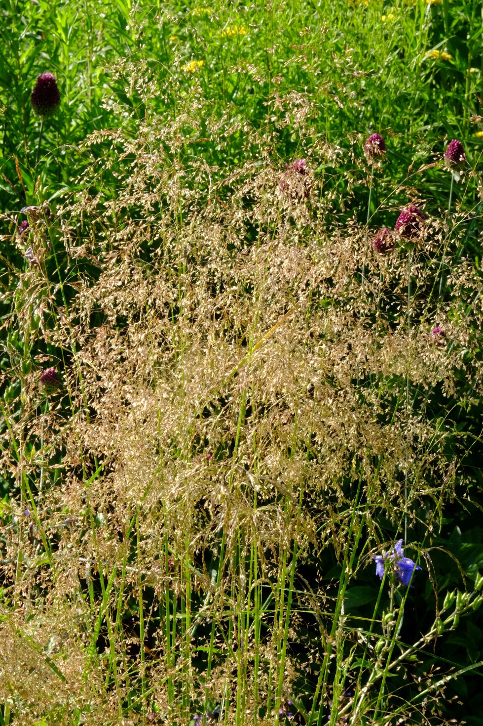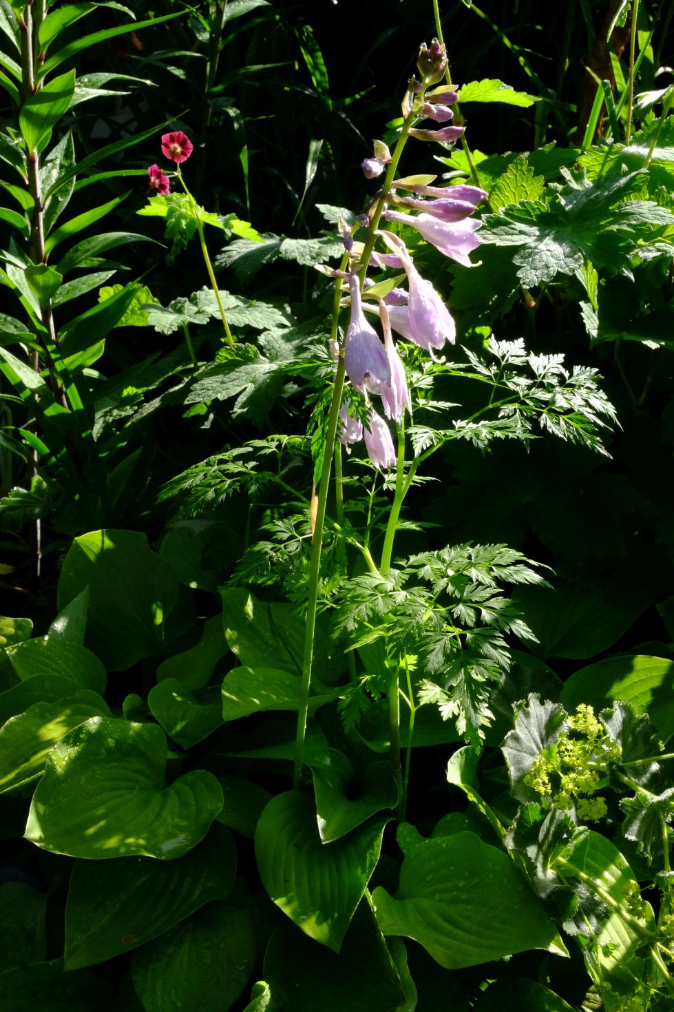 Auffallend blüht in diesem Jahr die Waldschmiele Deschampsia cespitosa ‚Bronzeschleier‘, im letzten Jahr habe ich es kaum wahrgenommen. Auch Betonica hirsuta ‚Hummelo‘ (Stachys monieri) besticht durch ihre kräftige und intensive Farbe – ob wir es dem häufigen Frühjahrsregen zu verdanken haben? Der kräftige Wuchs aller Stauden und Gehölze gefällt uns jedenfalls…..