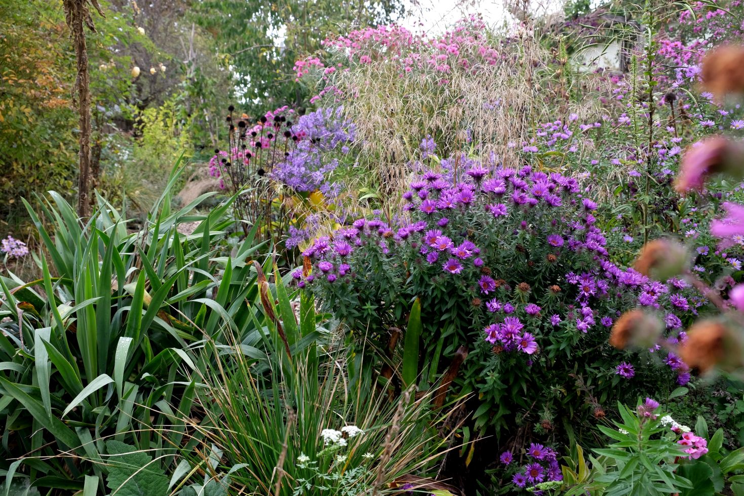 Eure Astern sind so schön!!! So eine kleine Chrysantheme (orange Knospen, gelbe Blüten) habe ich auch und Eisenhut (dieses Blau!). Bei Dahlien passe ich. Ich habe einfach keine Lust, die jedes Jahr auszugraben und im Frühjahr wieder einzugraben. Ich habe auch nur eine Sorte Tulpen, die man ausgraben muss, alles andere sind botanische Sorten. Ich bewundere die Gärtner, die den ganzen Garten mit Dahlien gefüllt haben, was für eine Arbeit! Eure Gräser haben sich toll herausgemacht! (Noch ein Ausrufungszeichen, haha.) Euer Garten ist eine Pracht, egal zu welcher Jahreszeit, Ausrufungszeichen, nämlich … 🙂