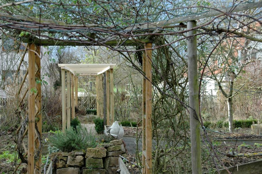Das Abschlußelement zur Weinlaube fehlt noch – jetzt gibt es erstmal wieder Schnee und Frost.