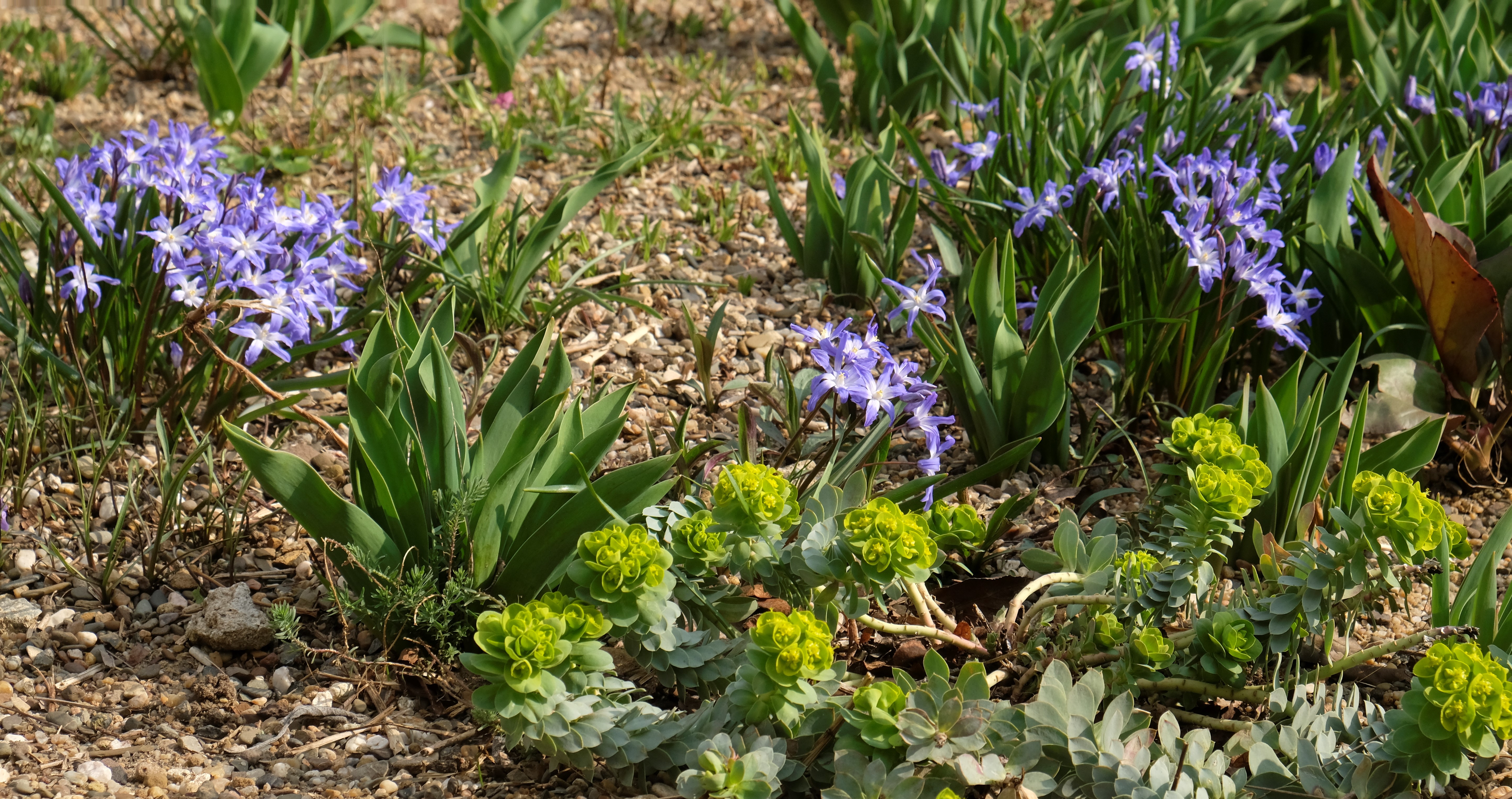 2. Das sieht ja bereits wundrschön aus bei euch! Ich glaube wir hinken mindestens drei Wochen hinterher, wenn nicht sogar vier. Bei uns sind die Schneeglöckchen und Krokus am blühen, zwei ganz frühe botanische Tulpen und eine einzelne Anemona blanda in blau. Ach, und dann natürlich die Zwergiris, von denen ich drei Sorten habe. Aber alle kleinen Tulpen, die letztes Jahr zum ersten Mal blühten, scheinen überlebt zu haben. Da bin ich schon ganz zufrieden. 🙂