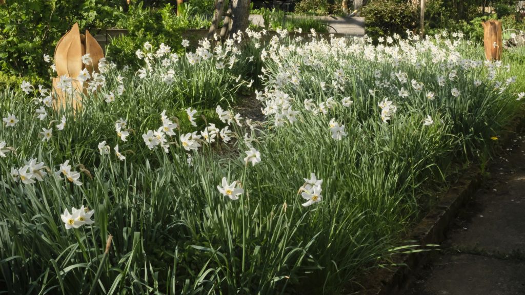 1. Ich bekomme beim Anblick eurer Narzissen ebenfalls Schnappatmung, liebe Sabine, das sieht ja fantastisch aus. 😊 👏 Was kommt auf der Fläche, wenn die Narzissen verblüht sind? Unser Frühling war auch erst viel zu trocken, aber nun hat es im Mai ziemlich geregnet. Es wächst wie wild, die Rosen sind dank des kühlen Wetters später dran und werden heuer zum ersten Mal im Juni voll blühen, so wie es sich für anständige Rosen gehört. 😉 Ich wünsche euch einen guten Start in den Rosenmonat, habt’s gut miteinander.