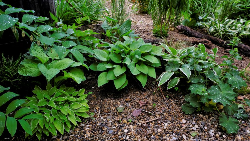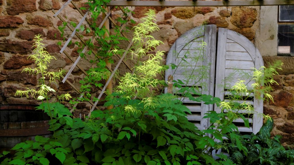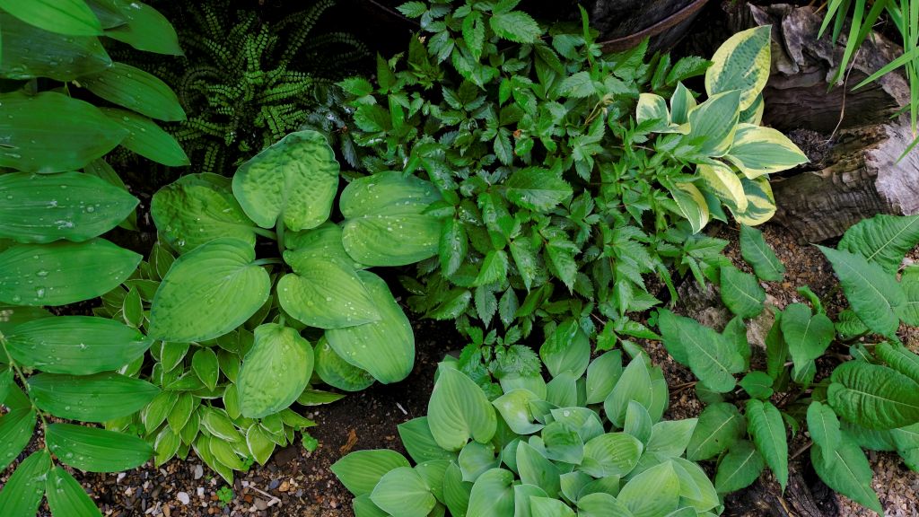 Im lichten Schatten haben sich Hosta, Farn und Co. mit dem Salomonsiegel und dem Waldgeißbart (Aruncus sylvestris, auch Aruncus dioicus) zu einem schönen Arrangement zusammen gefunden.