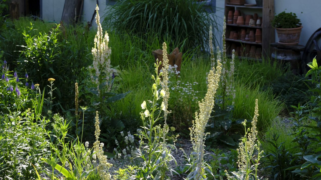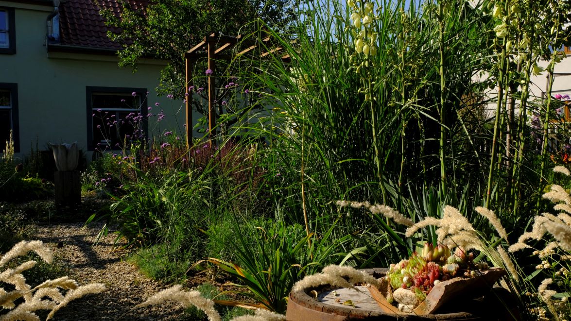 In den Staudenbeeten wächst manches einfach rückwärts – seit Wochen hat es keinen Tropfen geregnet……die Vorräte sind verbraucht und jetzt sind wir gespannt, ob es morgen mal regnet.