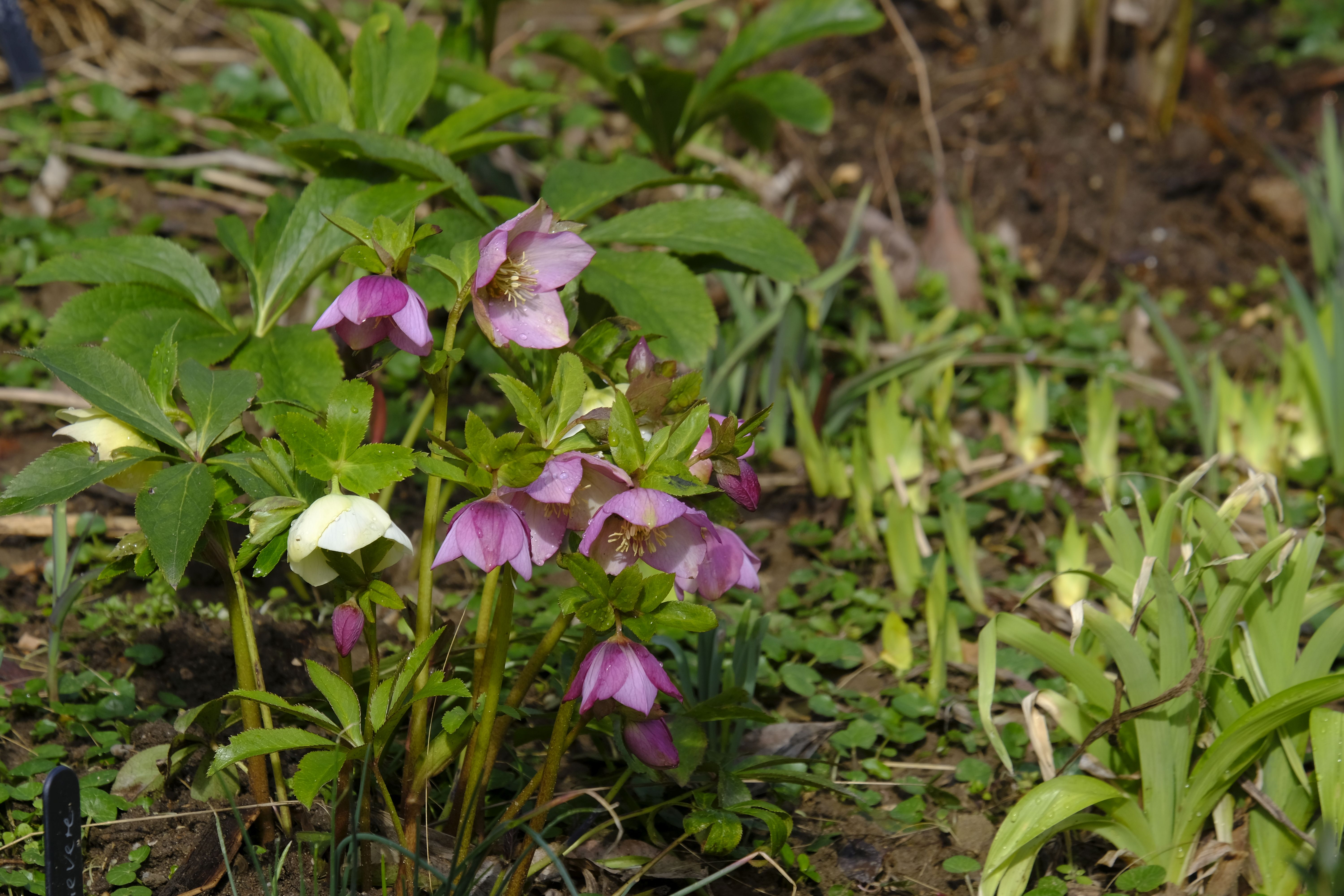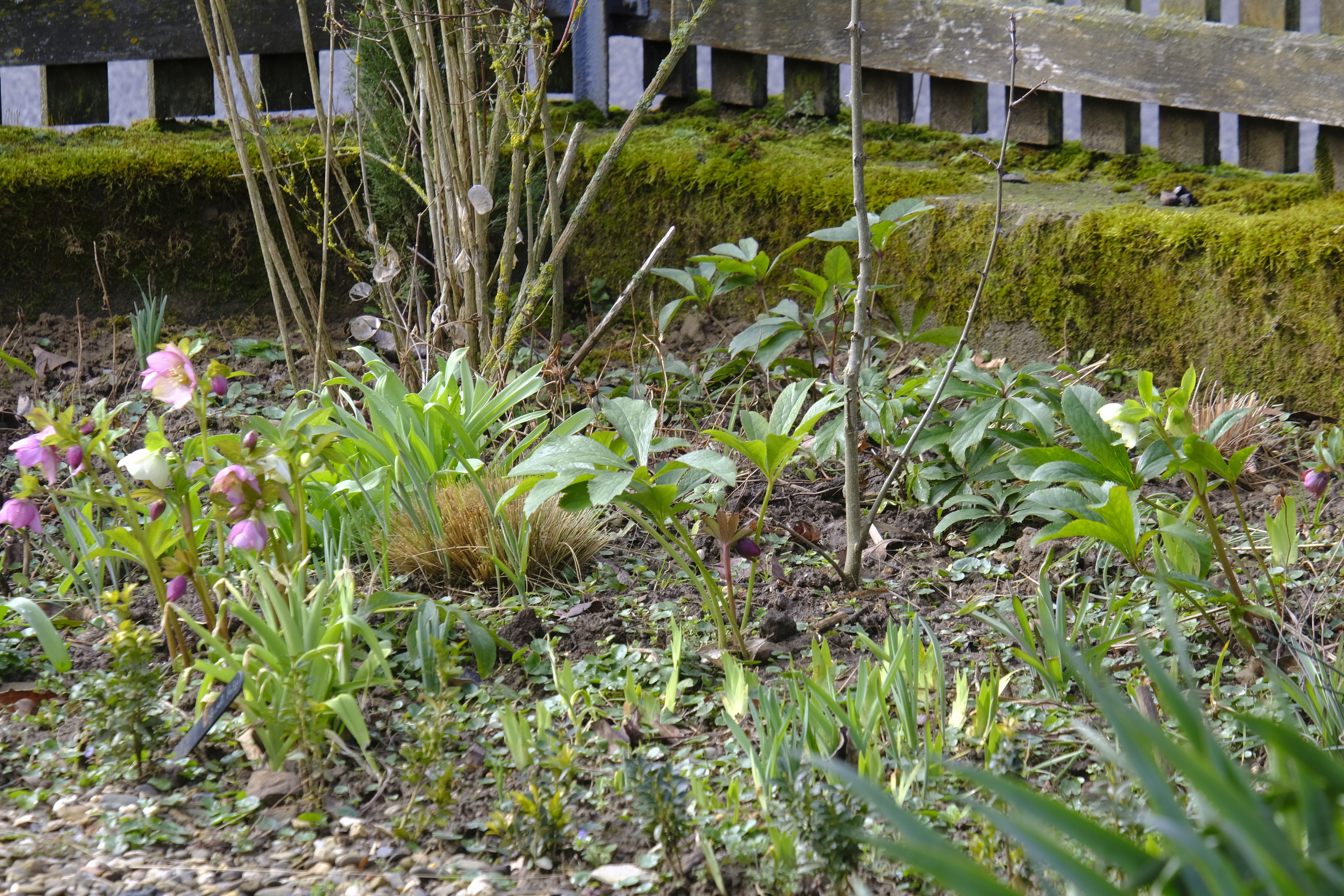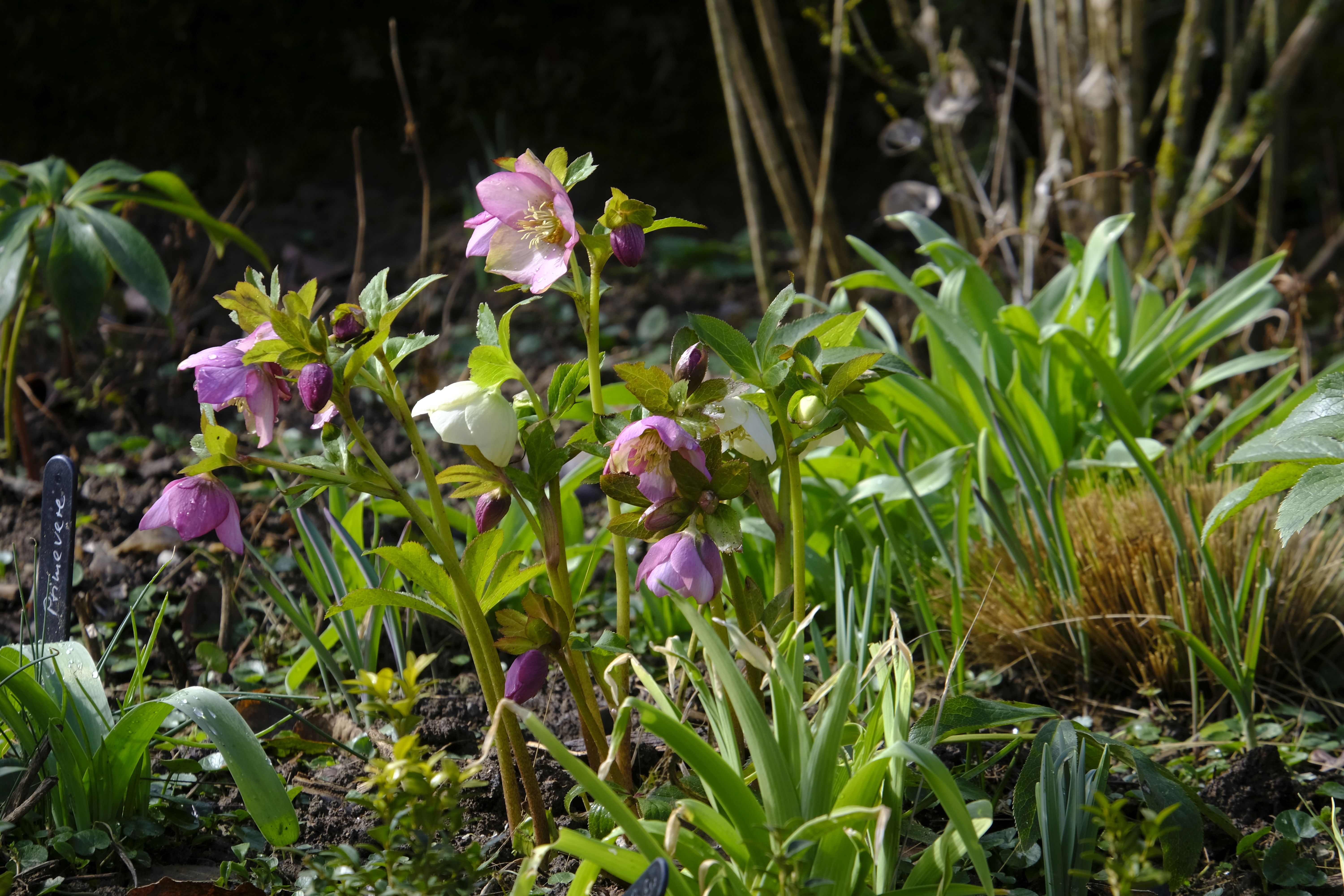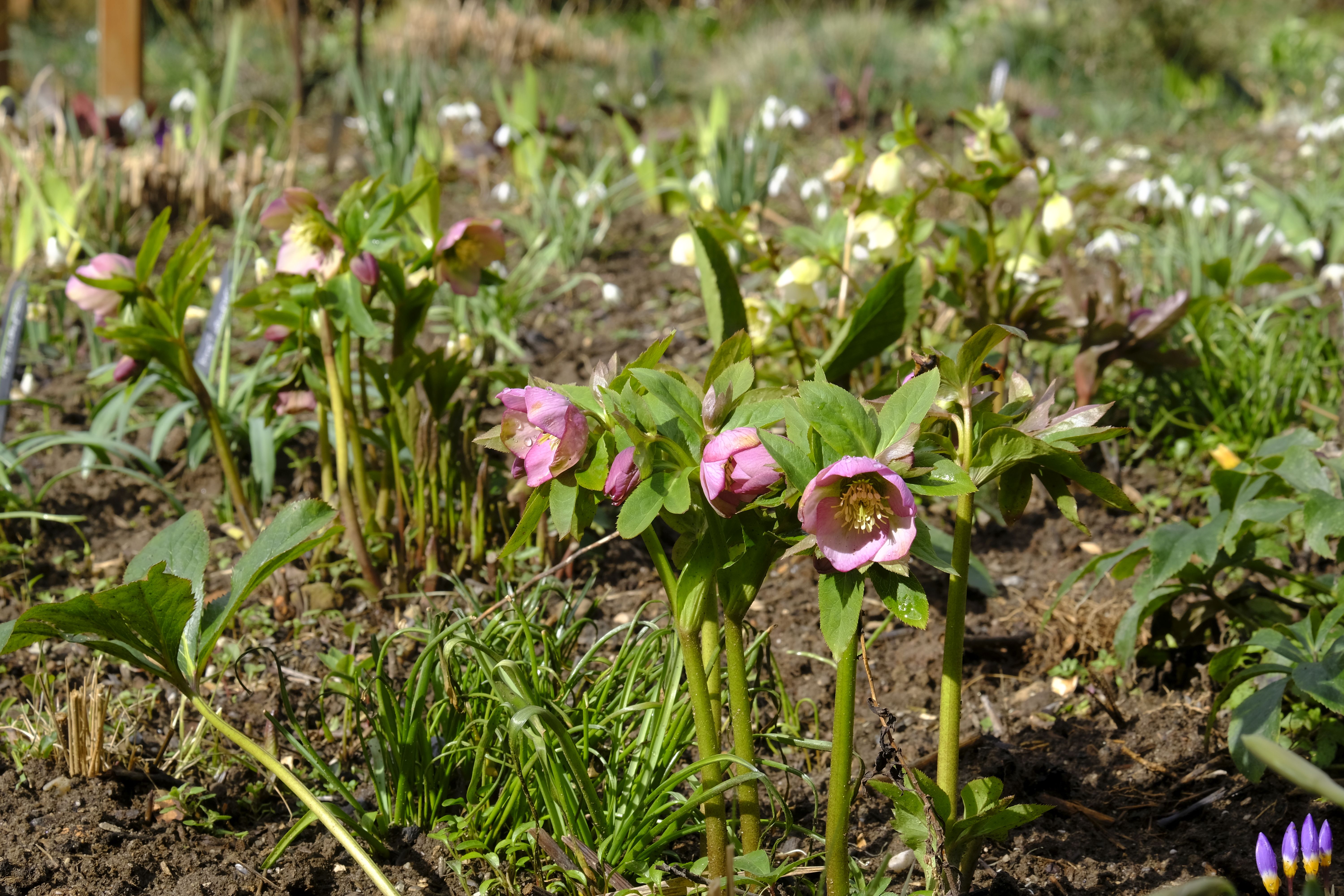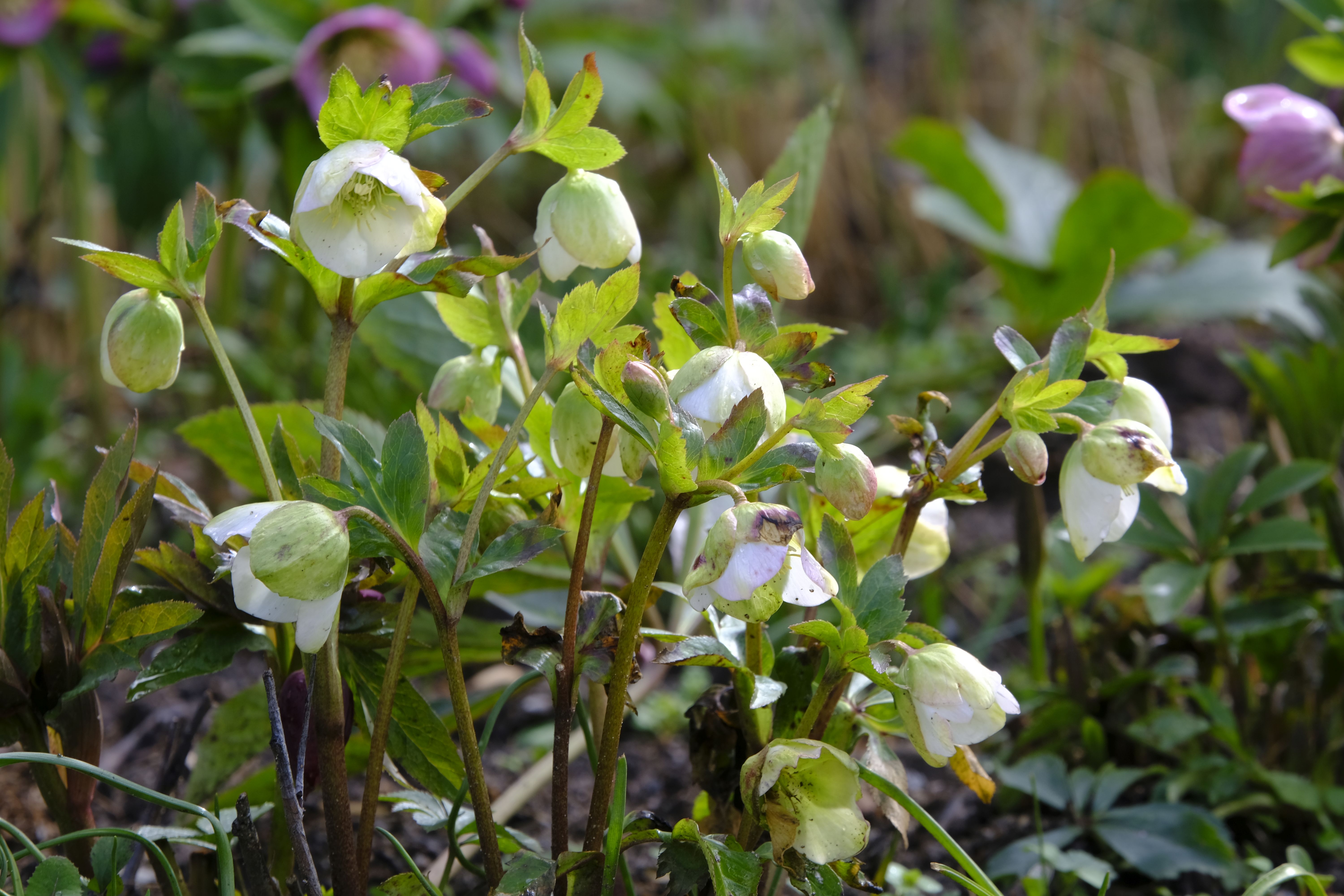 Die Lenzrosen sind eine wunderbare Ergänzung – bereits im Winter zeigen sie unter dichtem Laub erste Knospen und blühen nach und nach auf und bilden bald üppige Büsche. Vor einigen Jahren bekam ich von einer Gartenfreundin hübsche Sämlinge, die sich prächtig entwickelten und mittlerweile wieder für neue Sämlinge sorgen.
