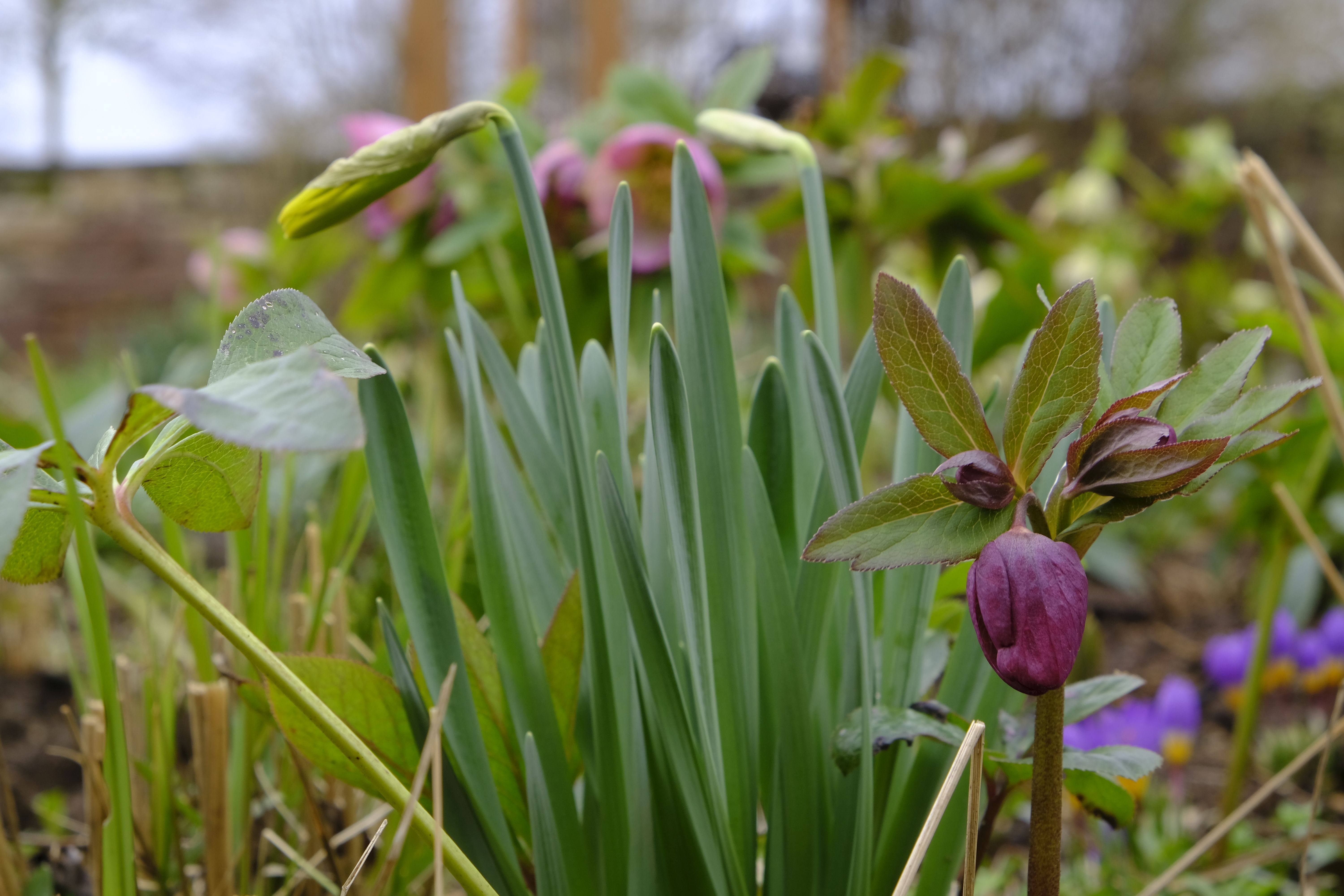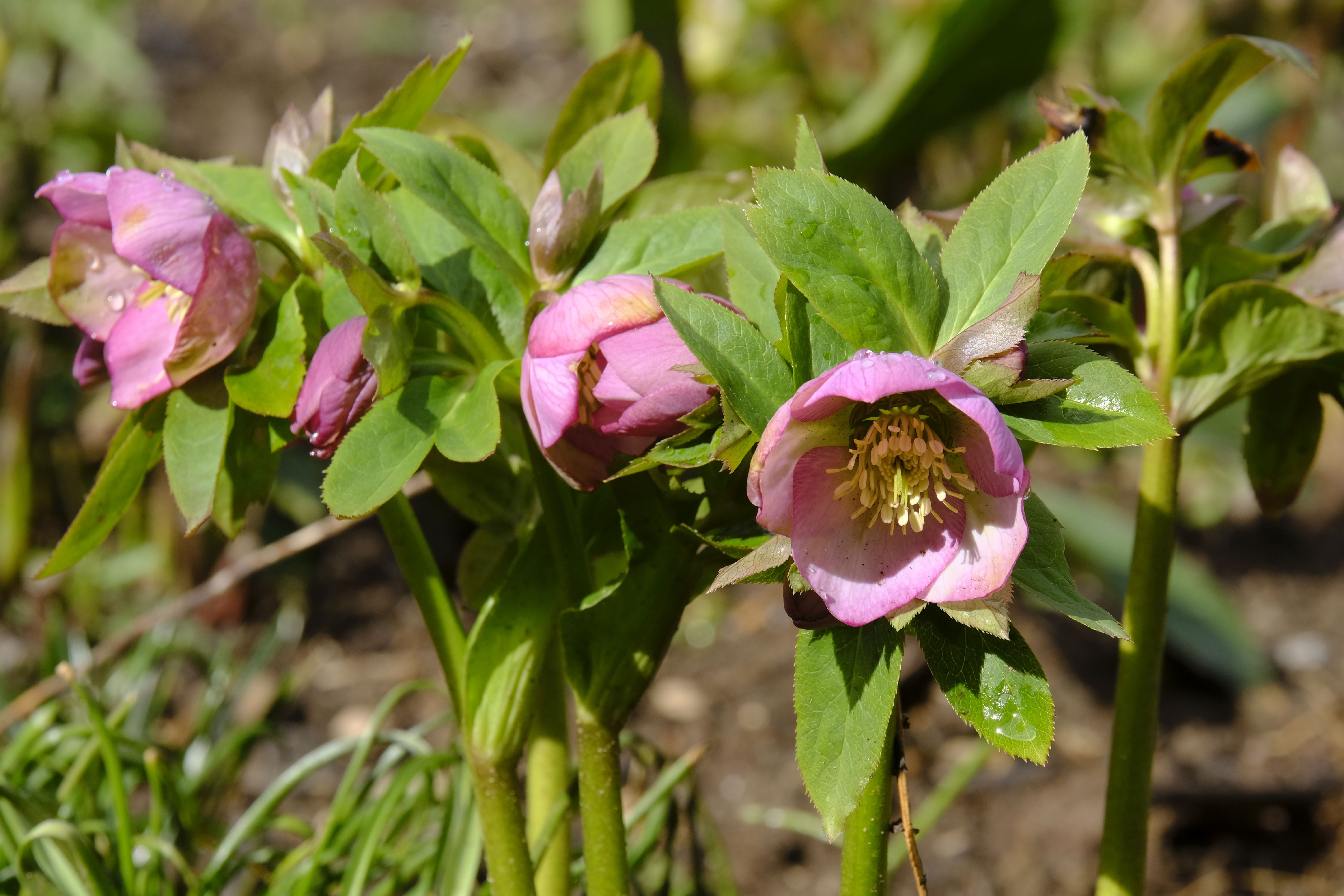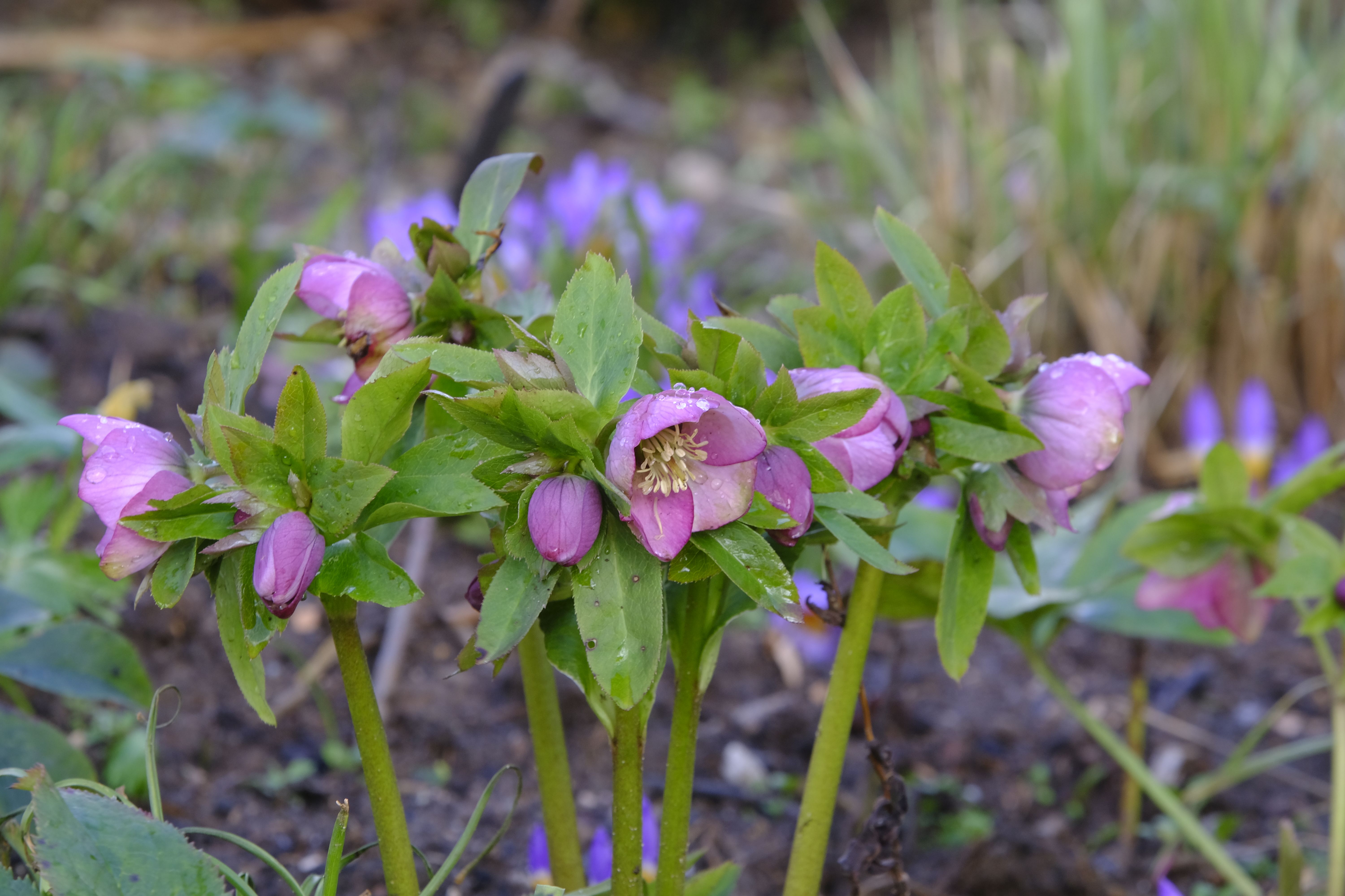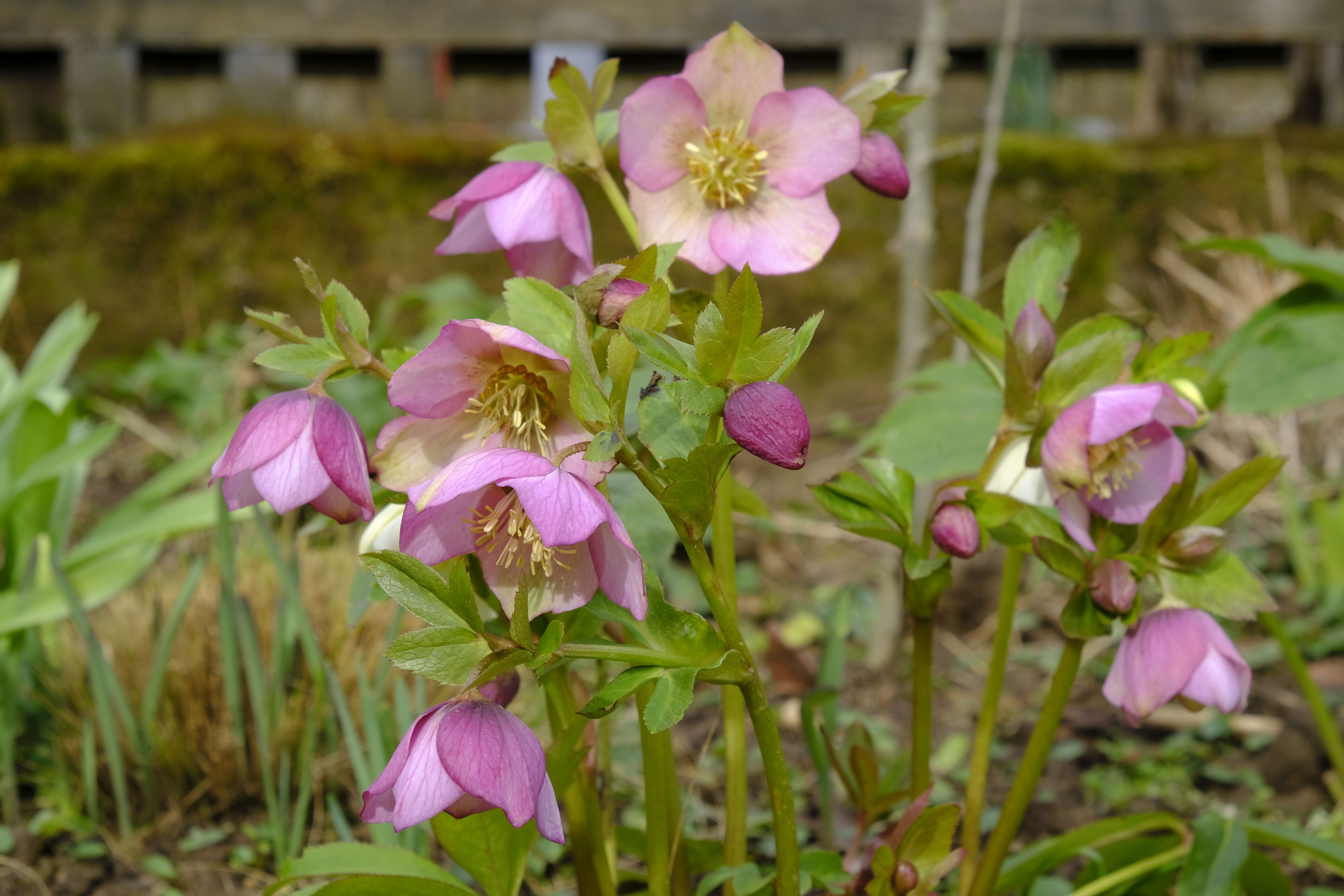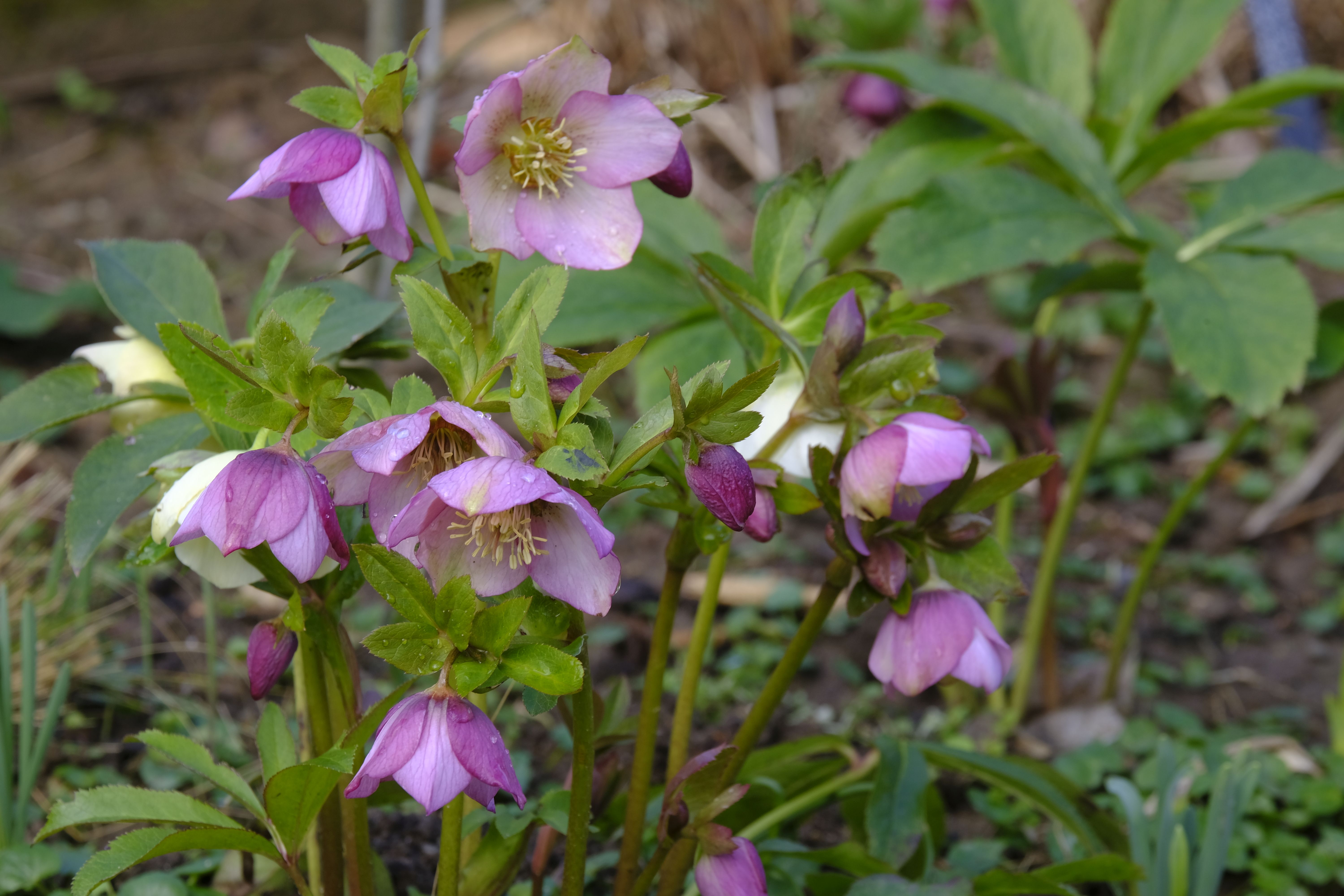 Die Lenzrosen sind eine wunderbare Ergänzung – bereits im Winter zeigen sie unter dichtem Laub erste Knospen und blühen nach und nach auf und bilden bald üppige Büsche. Vor einigen Jahren bekam ich von einer Gartenfreundin hübsche Sämlinge, die sich prächtig entwickelten und mittlerweile wieder für neue Sämlinge sorgen.