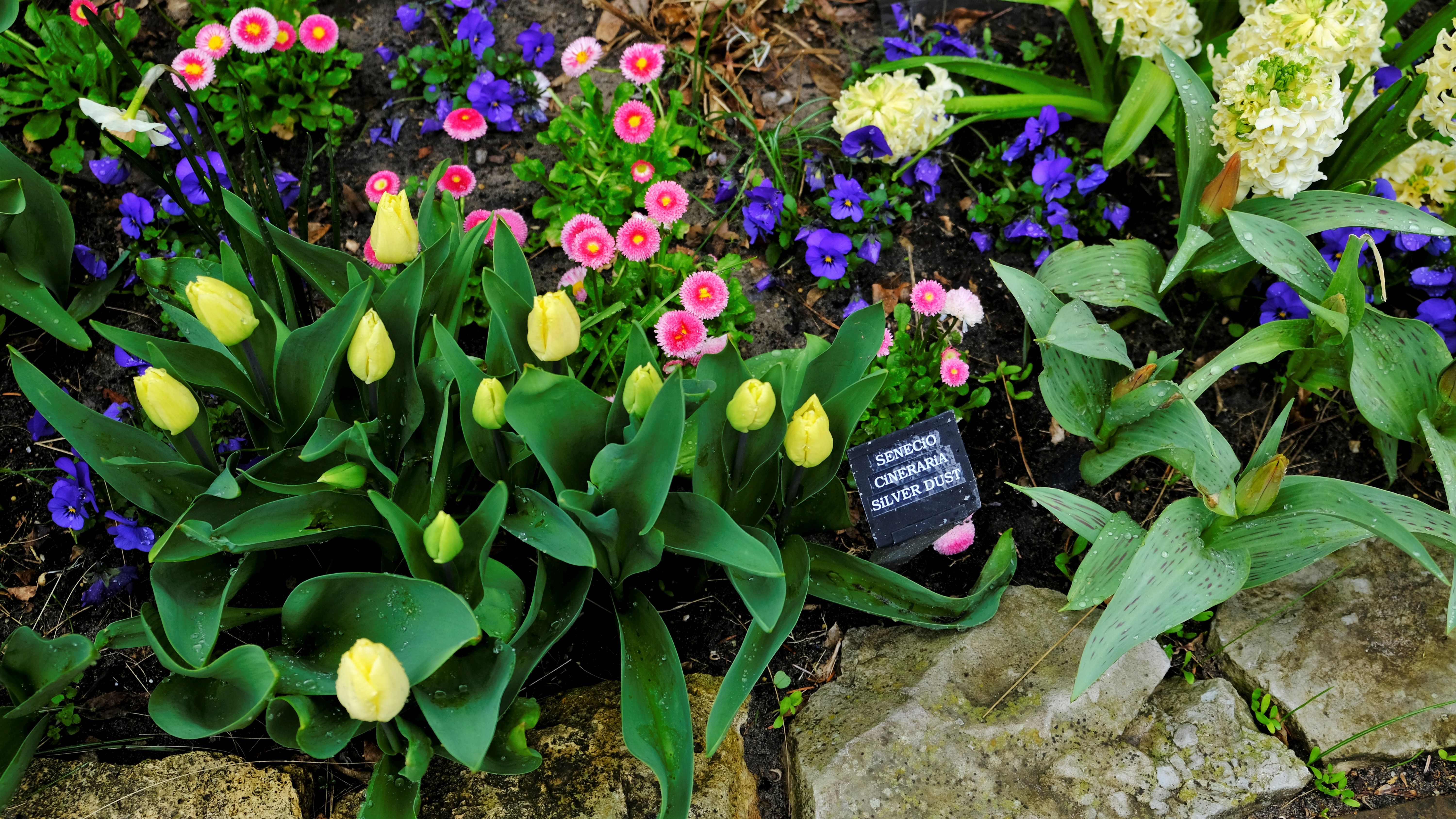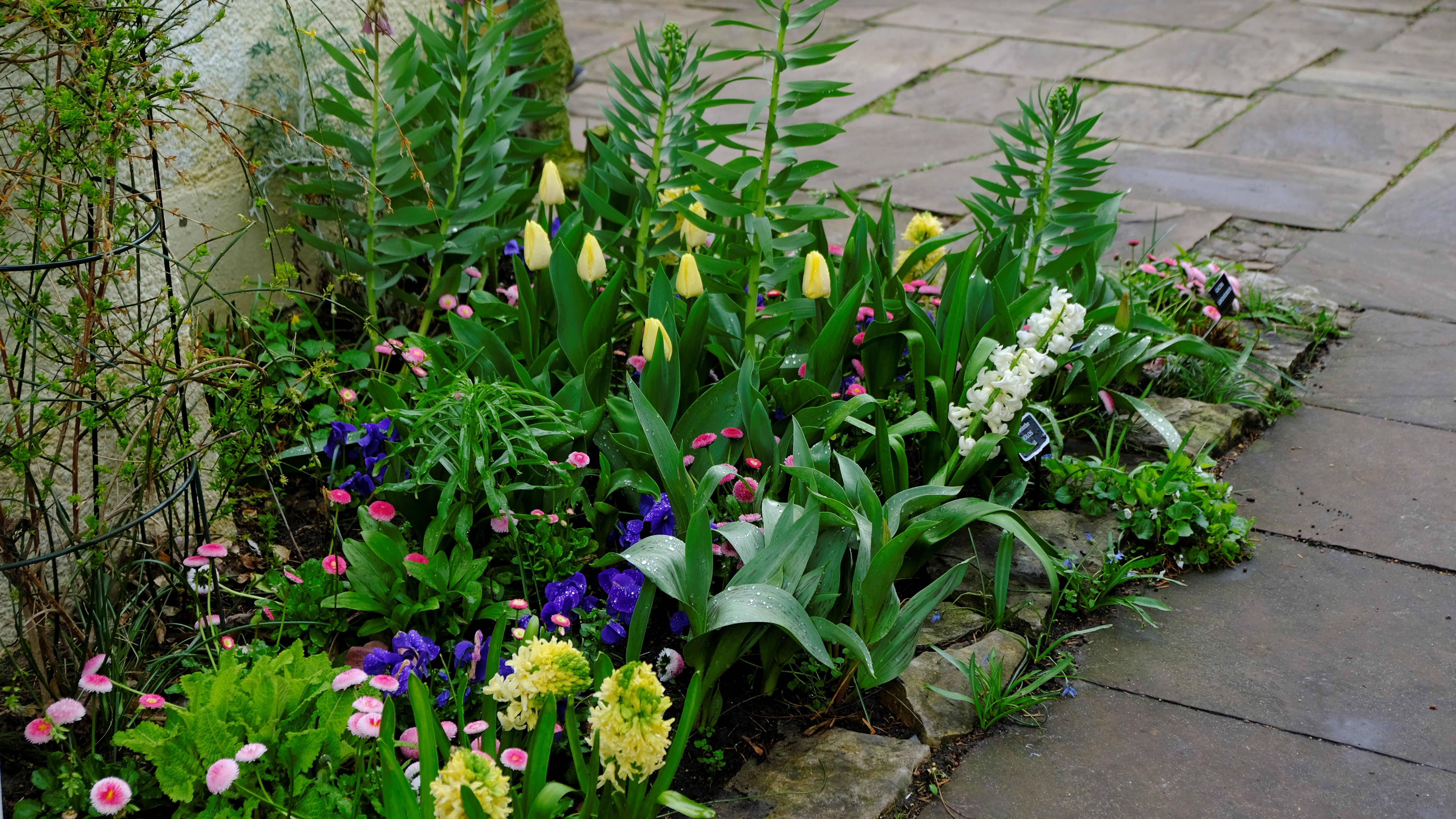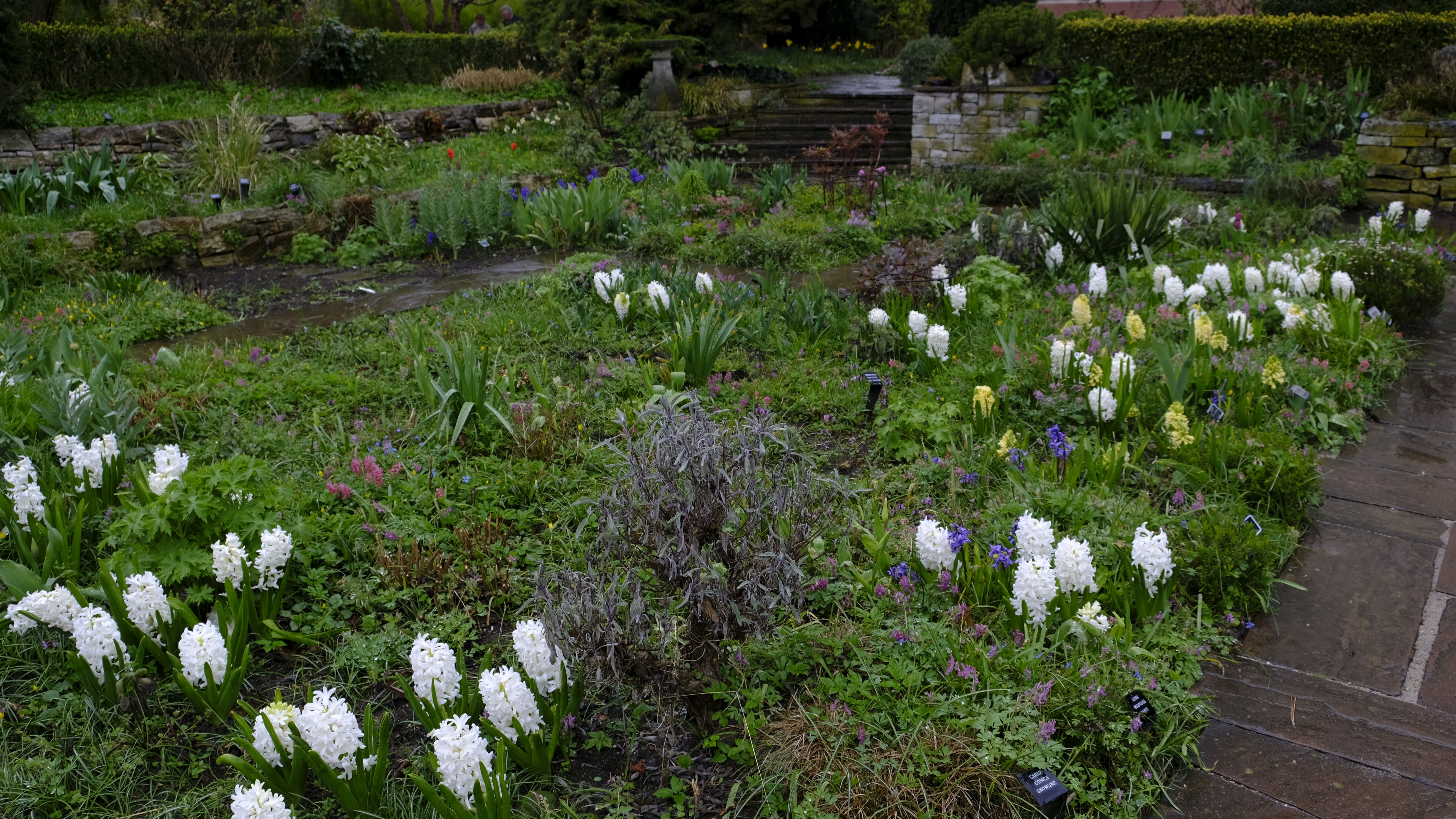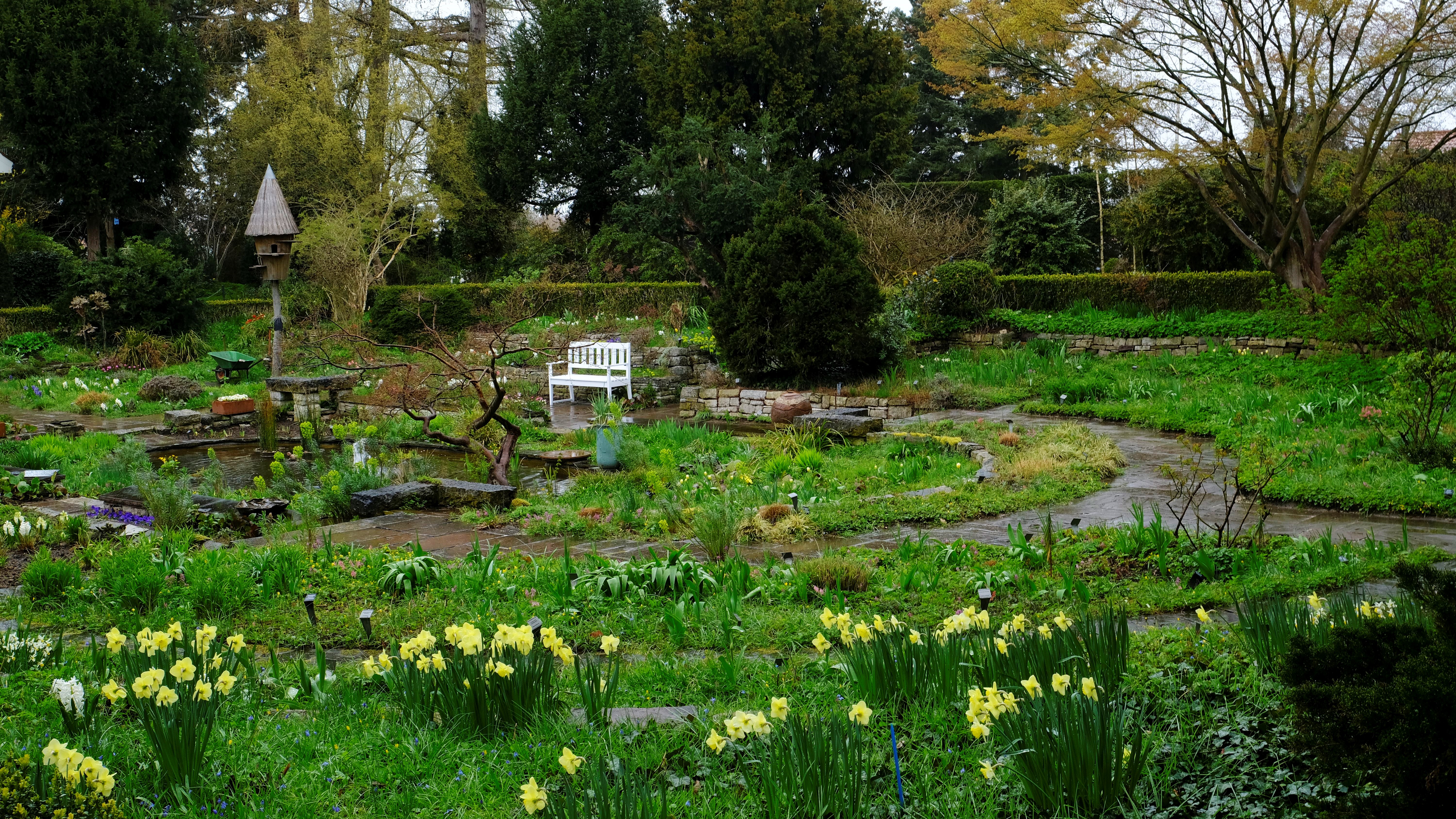 Bei dieser Gelegenheit haben wir den Garten besichtigt. Der Senkgarten strahlte in frühlingshaftem Weiß und Gelb.