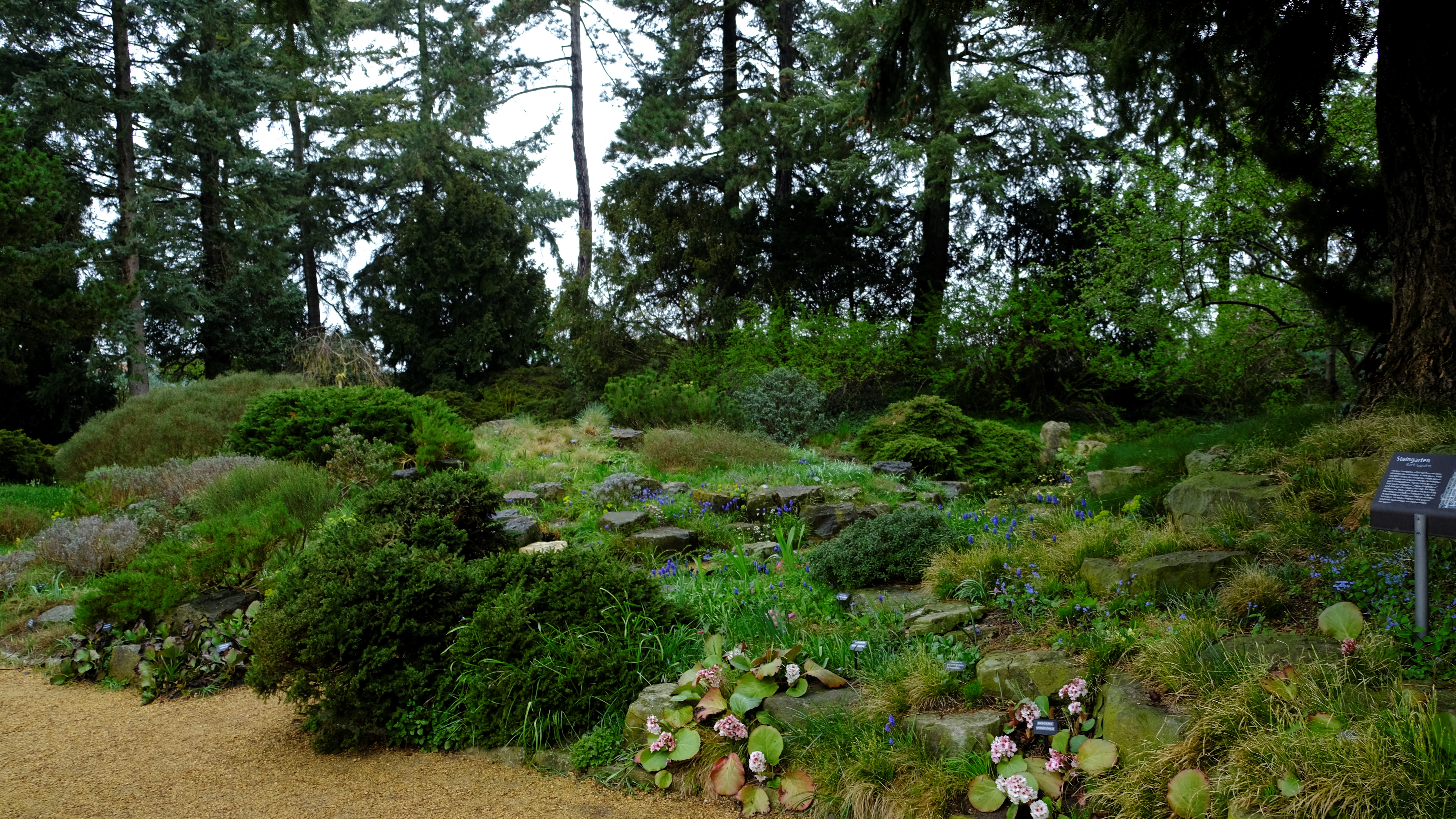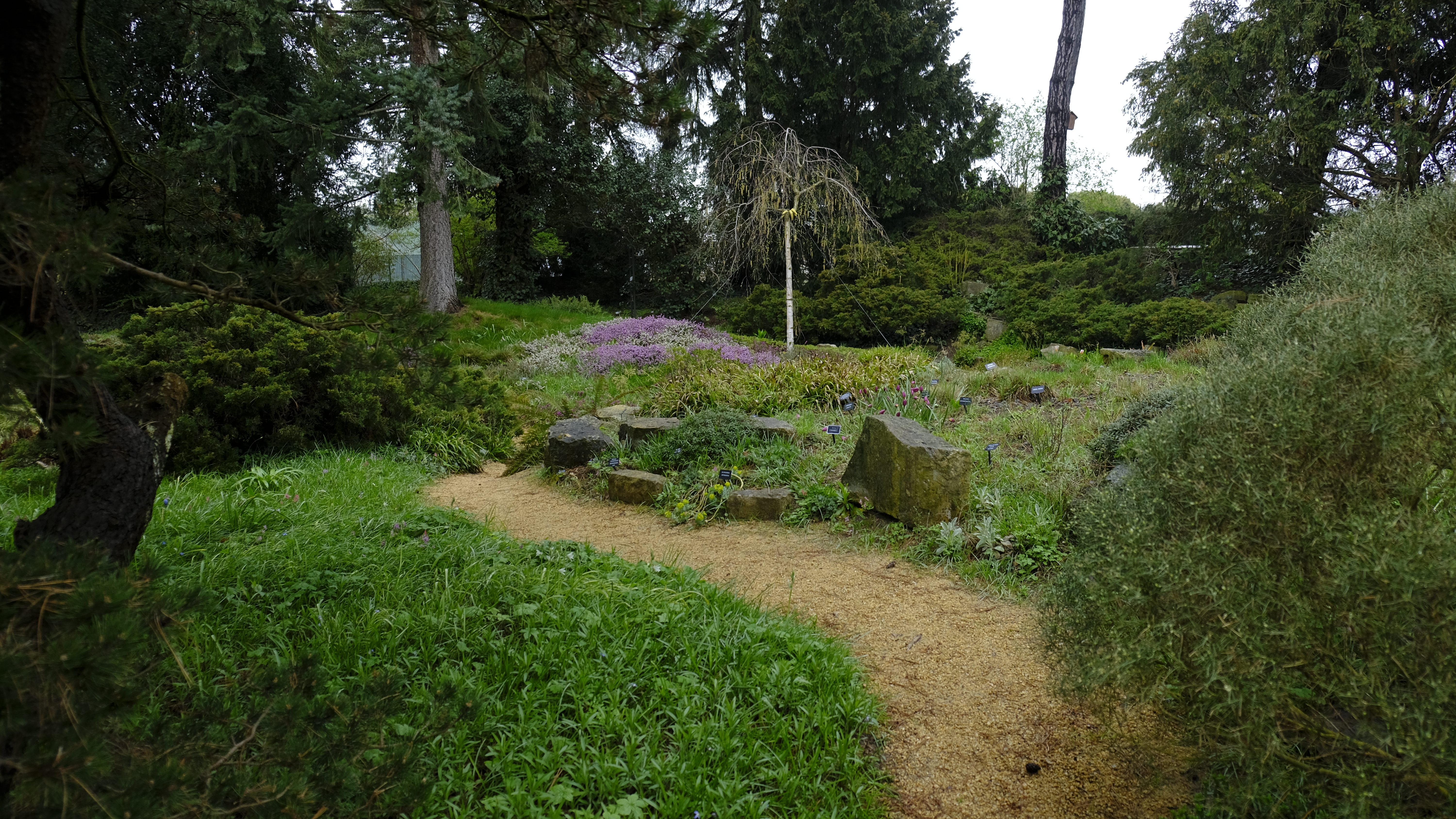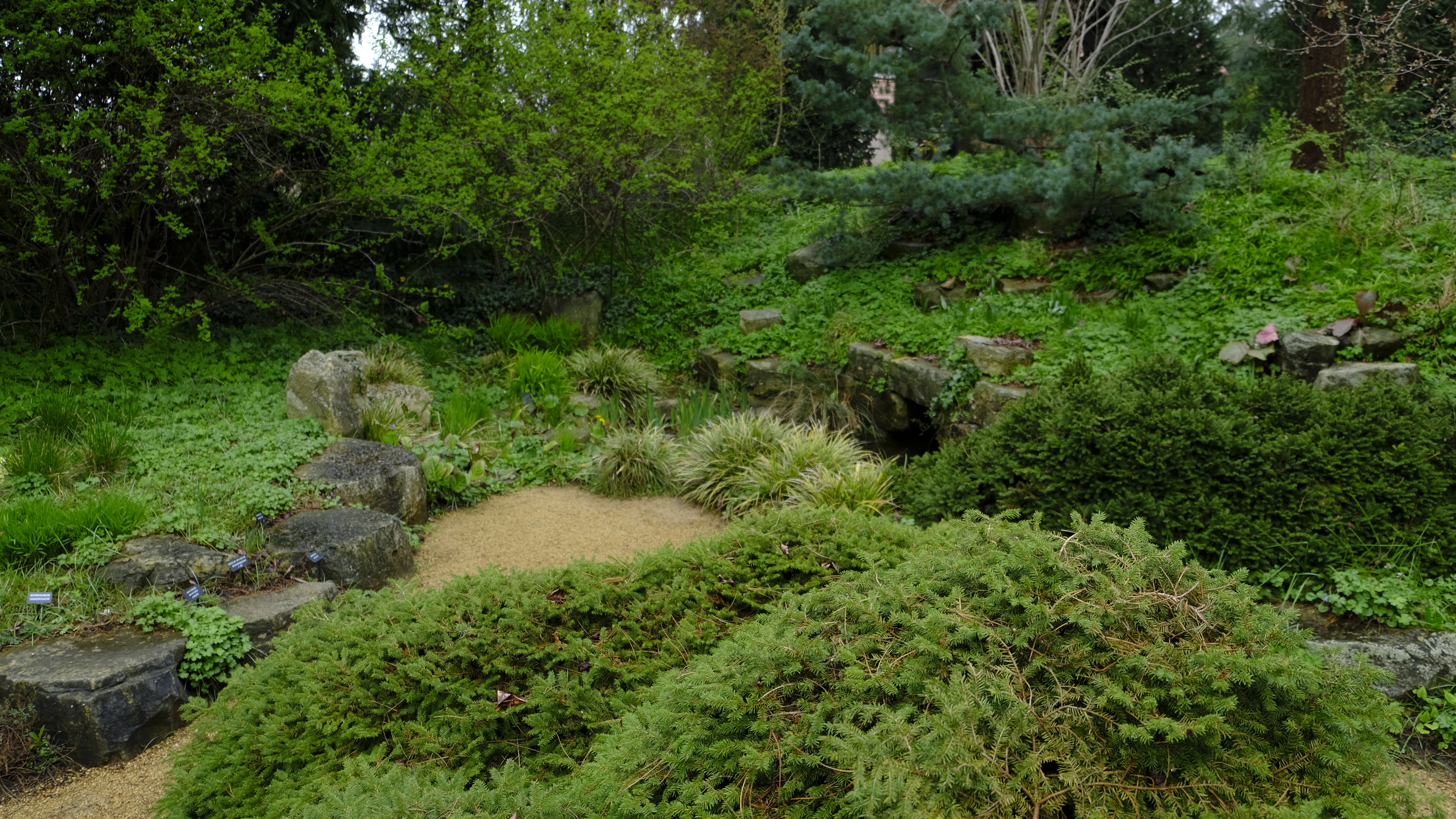 Den Steingarten mit seinem abwechslungsreichen Geländeprofil und geschwungenen Wegen mussten wir uns diesmal genauer ansehen. Vielfältiges Grün und bunte Heideflächen betonen die wunderbare Gestaltung.
