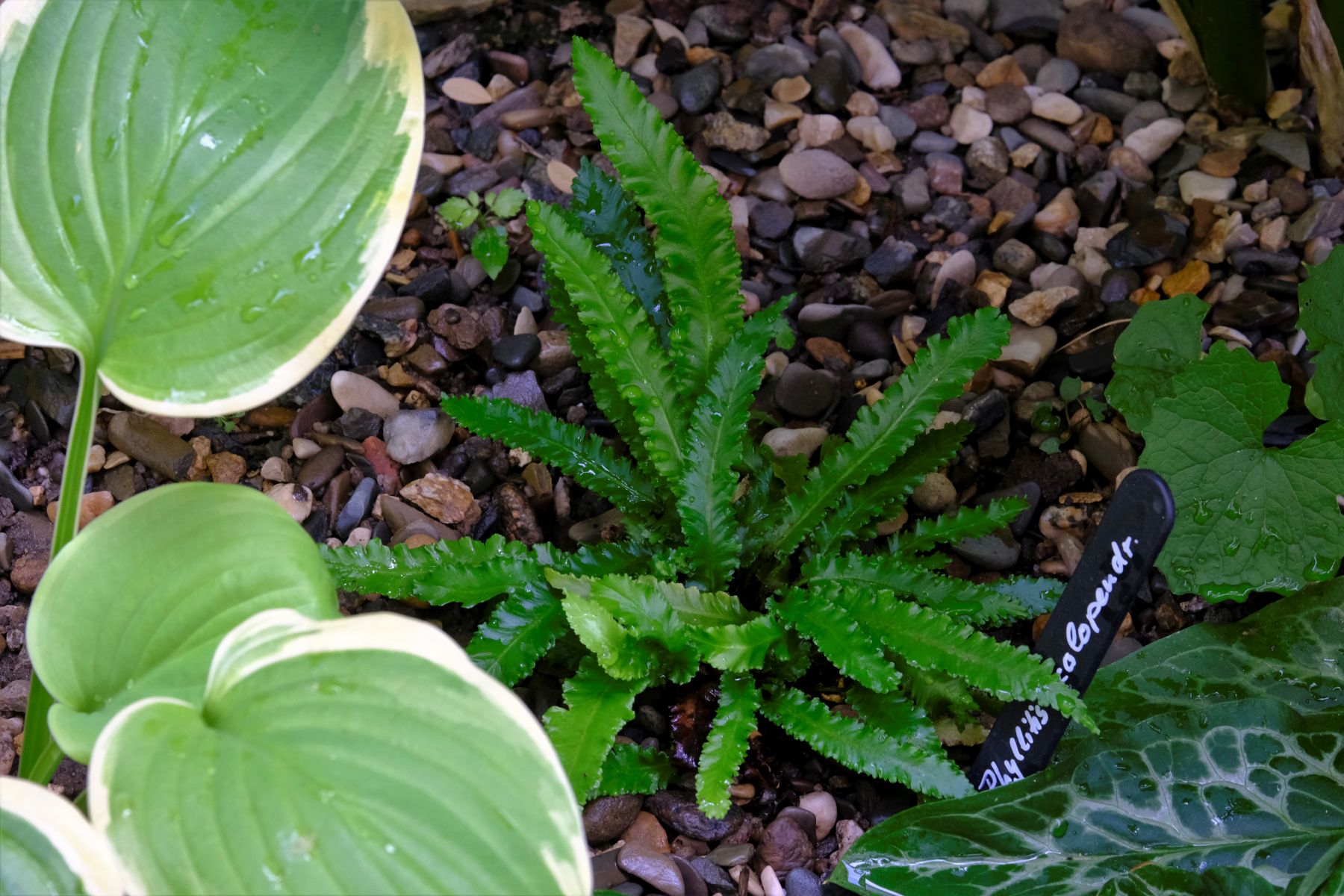Aber nicht nur Hostas und Farne sind hier vertreten. Um die Pflanzfläche noch etwas reizvoller zu gestalten, pflanzten wir Bergenien, Polygonatum, Arum, Rodgersia, Tiarella, Tellima grandiflora, Brunnera, Viola odorata, Thalictrum und Beesia calthifolia dazu.