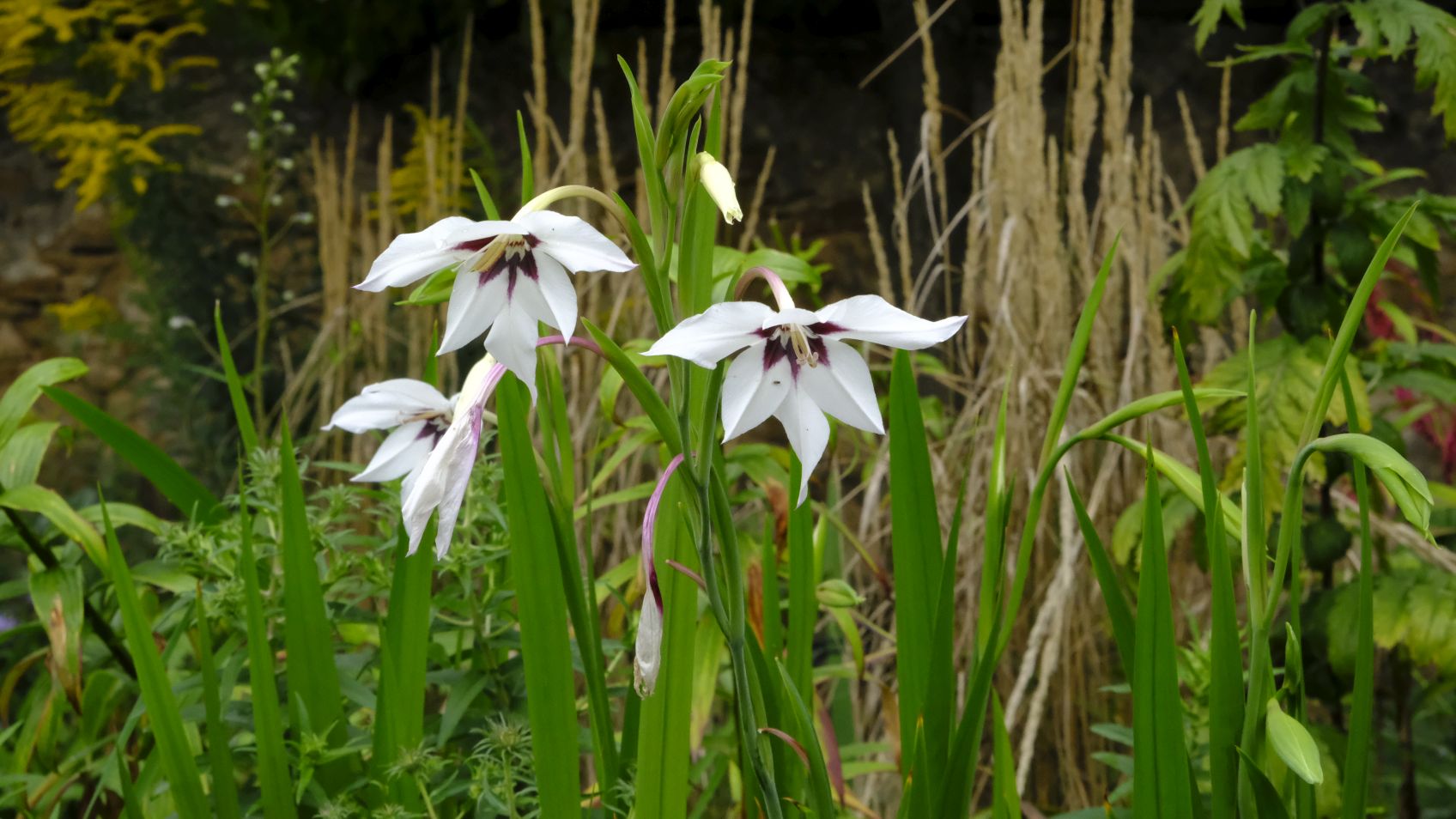 Die Herbstanemonen sind besonders prächtig und reichblühend in diesem Jahr. Im Taglilienbeet entdecken wir die Stern-Gladiolen mit zauberhaftem Duft!