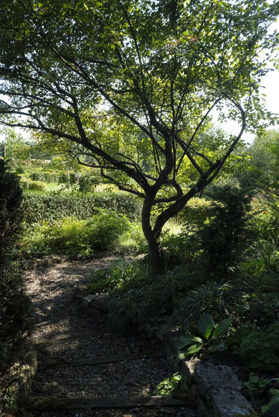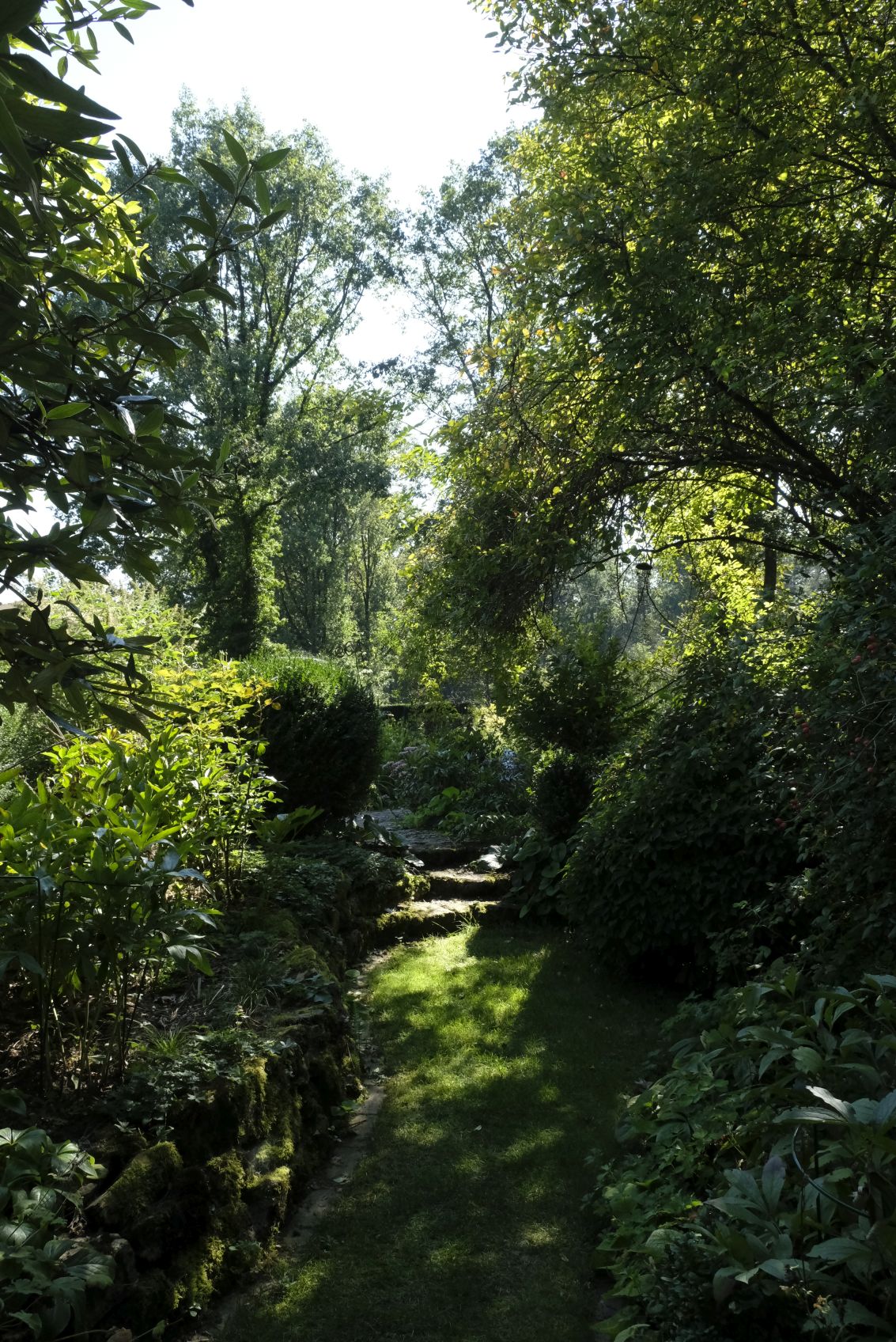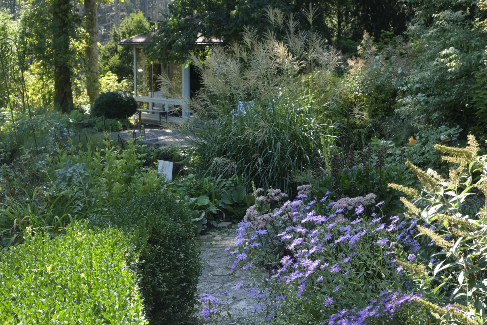 Kühle Wege zwischen Gehölzen geleiten zurück zu Kaffee und Kuchen. Aber nicht lange, und die sich neigende Sonne lockt noch einmal zu einer Reise durch diese von Lichtspielen verzauberten Gartenlandschaften.