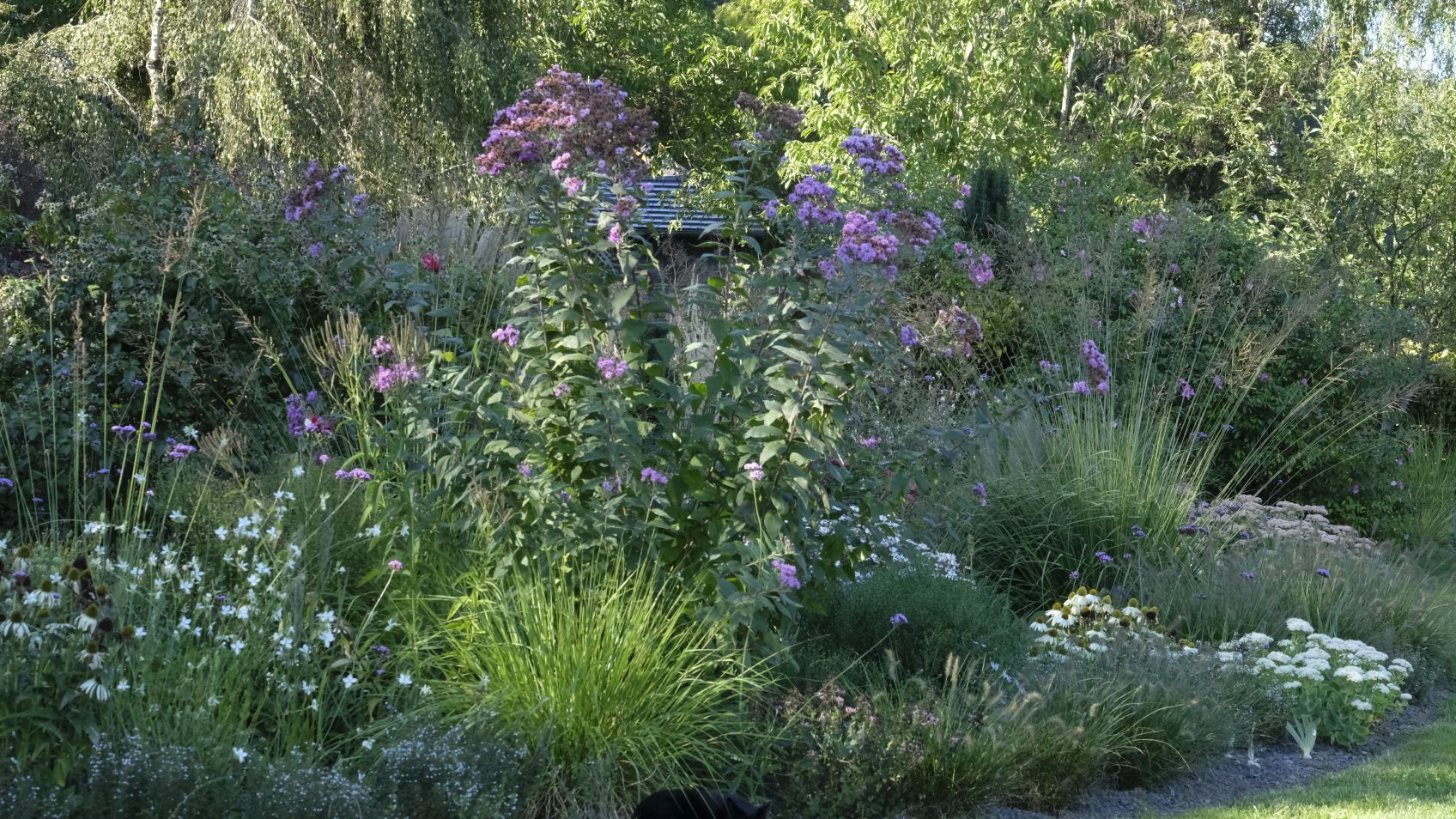 Stauden und Gehölze verdecken den Blick auf den Garten. Lichtstrahlen, die durch das Laub hoher Bäume fallen, locken, den Garten zu entdecken. Eine Entdeckungsreise soll es werden, ein Gartenraum wechselt zum nächsten, dann führt der Weg auf lichtdurchflutete Gartenlandschaften.