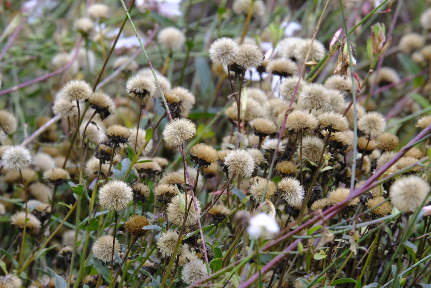 Jetzt ist der Herbst endgültig angekommen. Nebelschwaden hängen über dem Land, Herbstwinde treiben die letzten Blätter von den Bäumen. Erste Stauden ziehen langsam ein und manche sind schon schwarz und eingetrocknet. Einige Astern tragen flauschige Puschel als Winterschmuck und bilden einen schönen Kontrast zu filigranen Blütenstände der Gräser.
