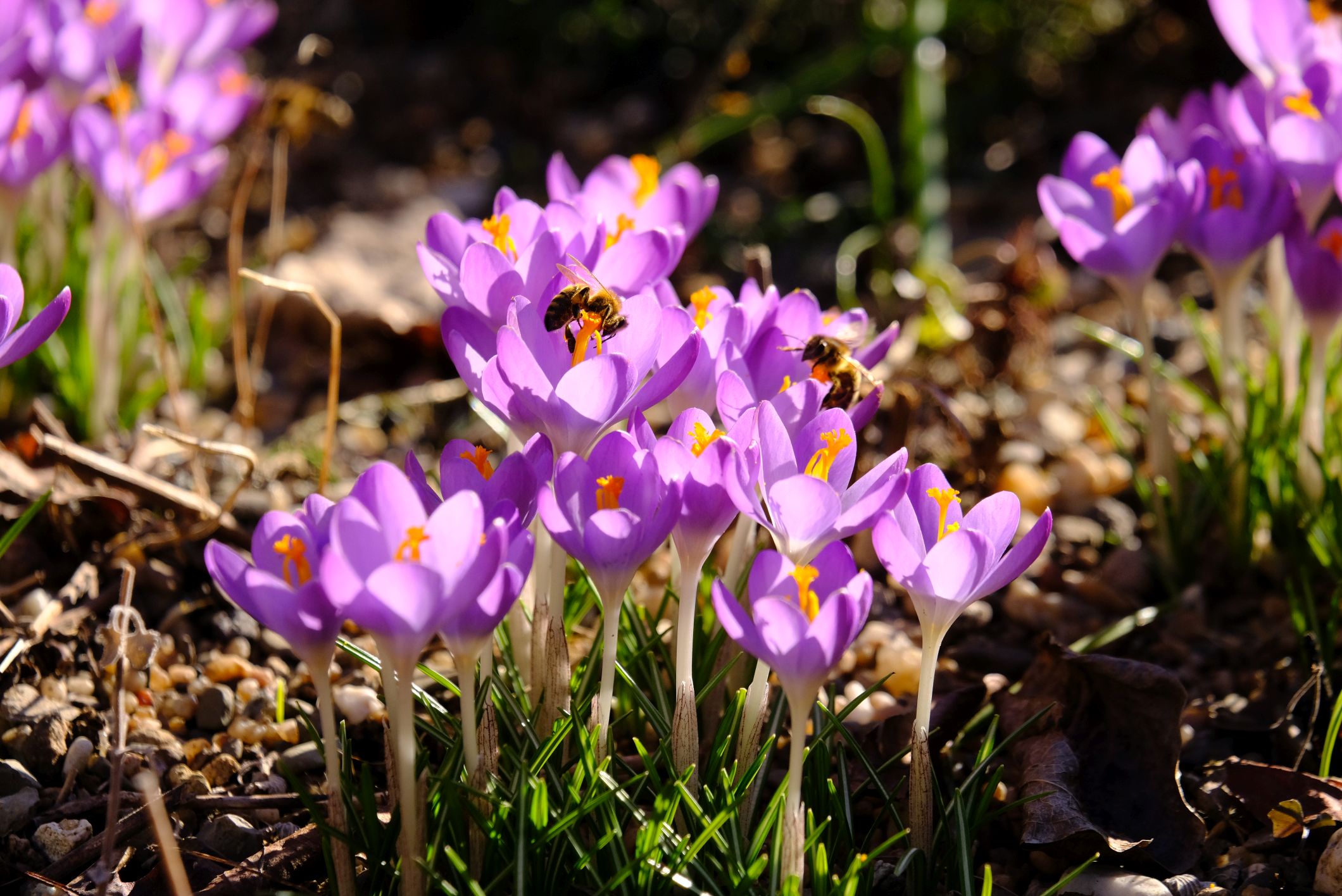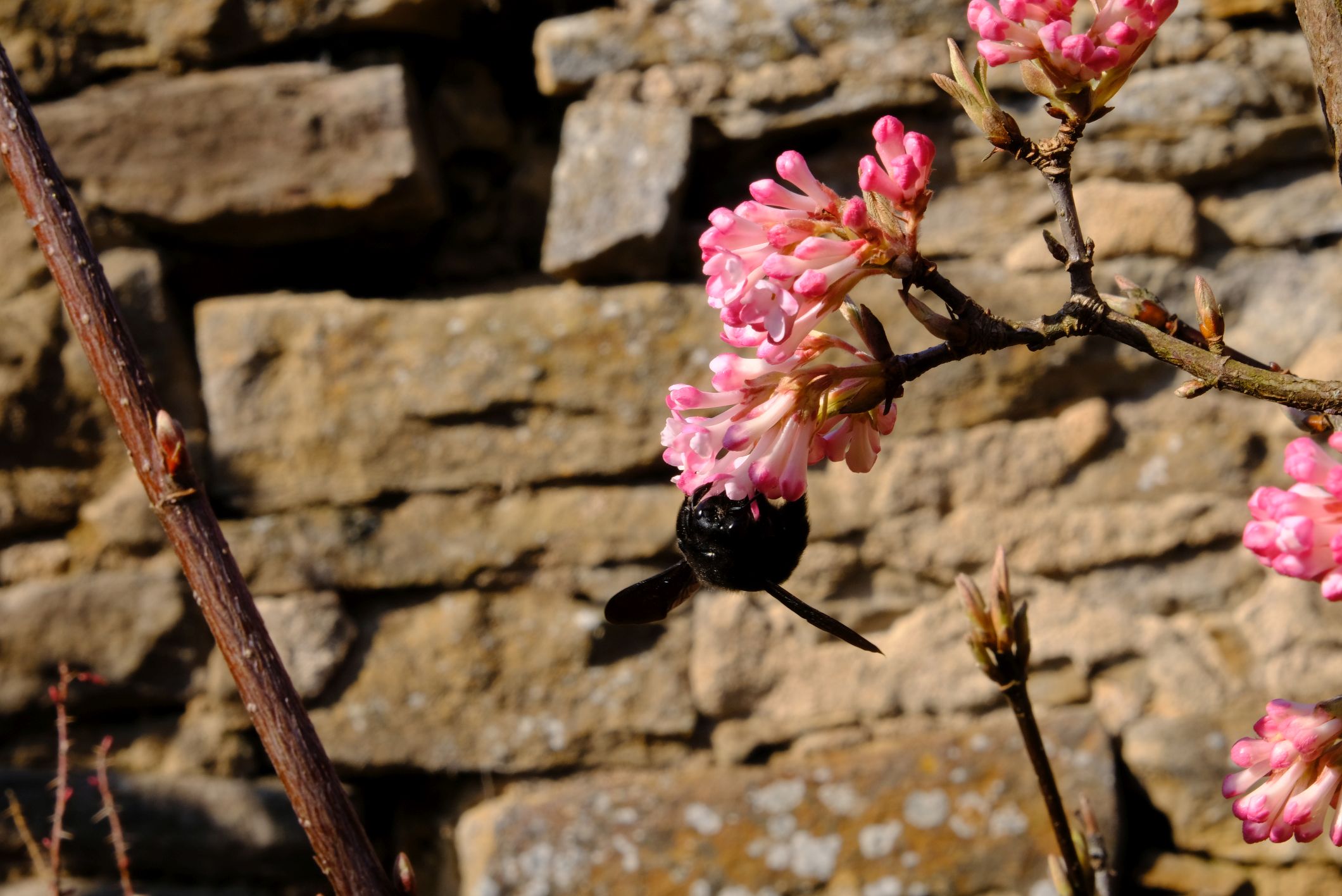 Frostig und fast niederschlagsfrei verlief der Februar. Lange warteten wir in den dunklen Tagen auf Farbe. Winterlinge und Schneeglöckchen zierten sich mit dem Öffnen ihrer Blüten. Jetzt mag man sich kaum sattsehen! Krokusse, Lenzrosen, Märzbecher und Duftschneeball locken die Wildbienen, sogar die Holzbienen sind in ihrem Element!