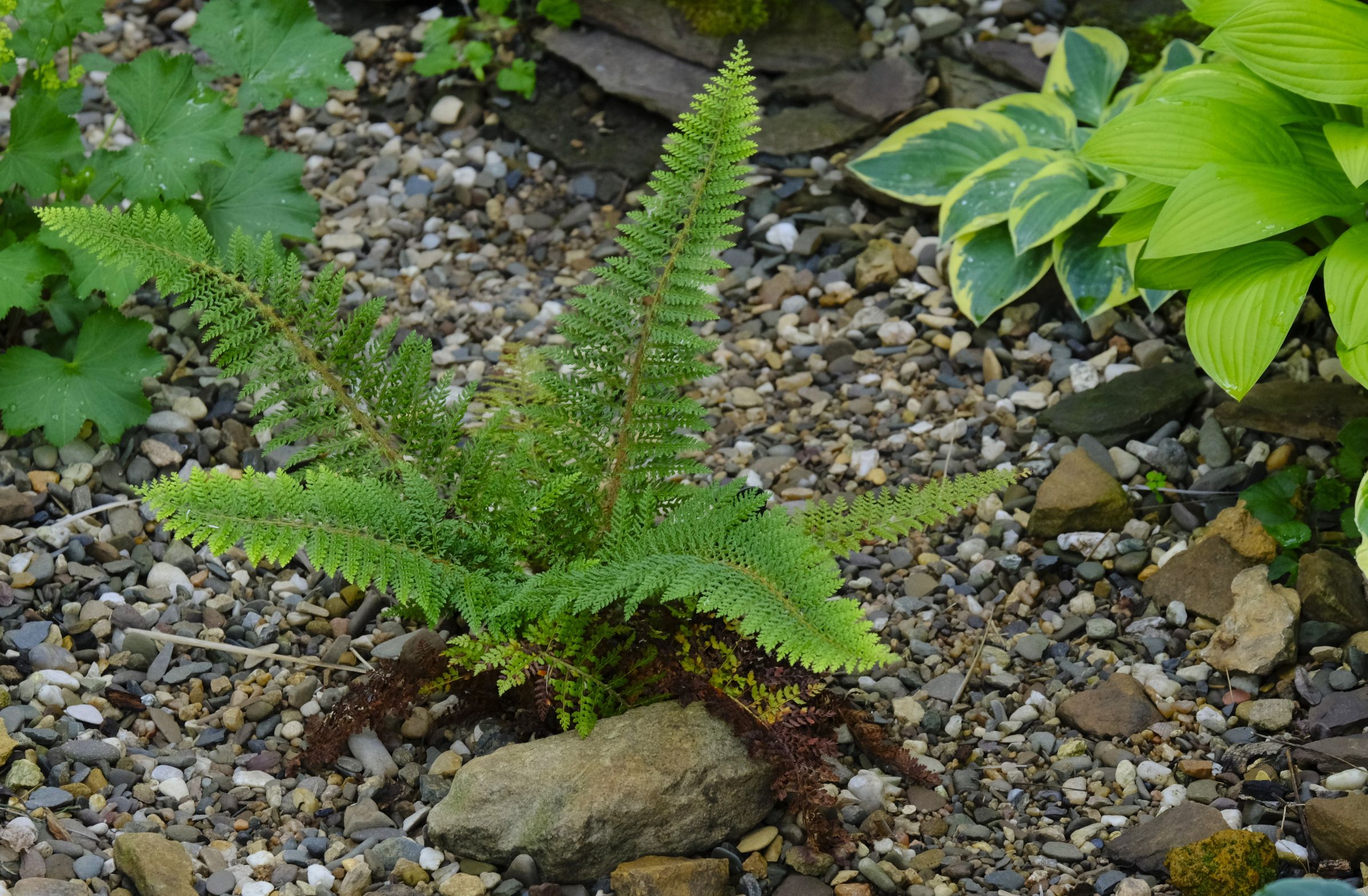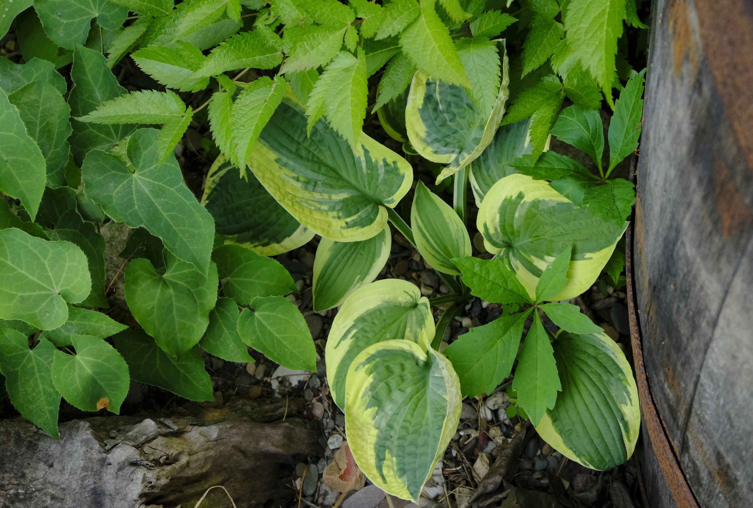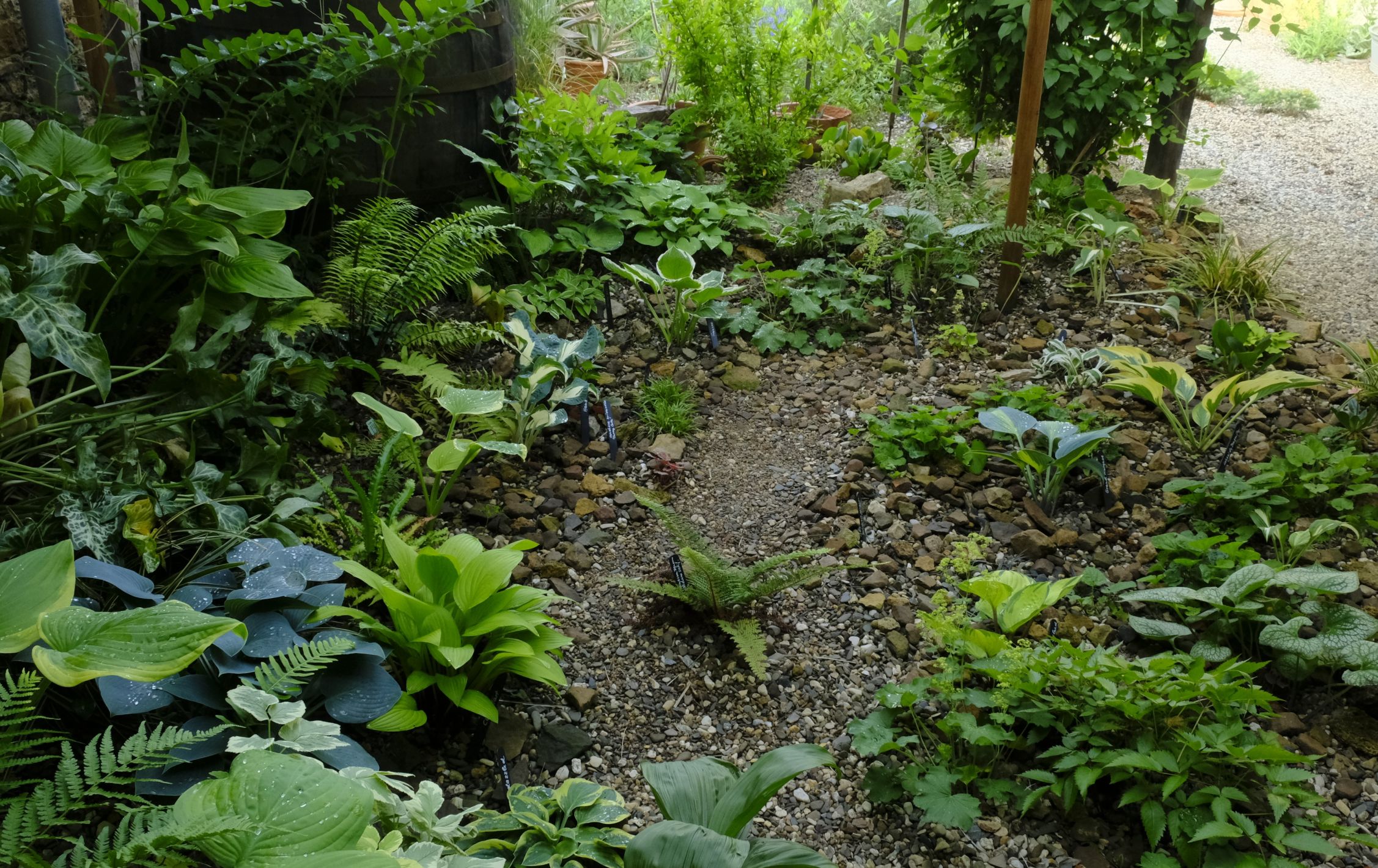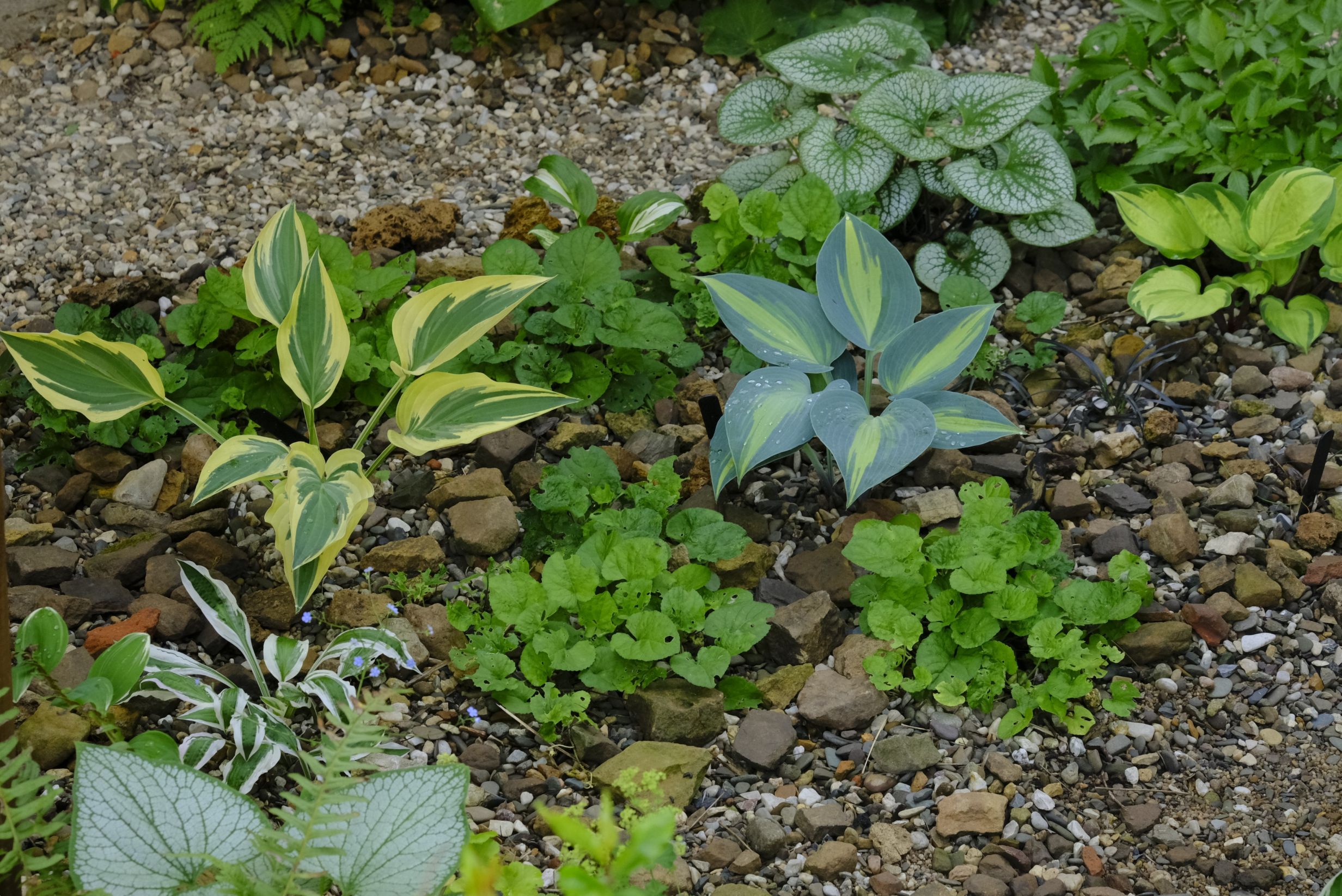 1. Vielleicht ist es gar nicht so schlecht, dass die Funkien mit Kies gemulcht sind. Das hält bestimmt die Schnecken besser ab, als wenn „nur“ Erde drum herum wäre. Es gefällt mir auf jeden Fall sehr gut.