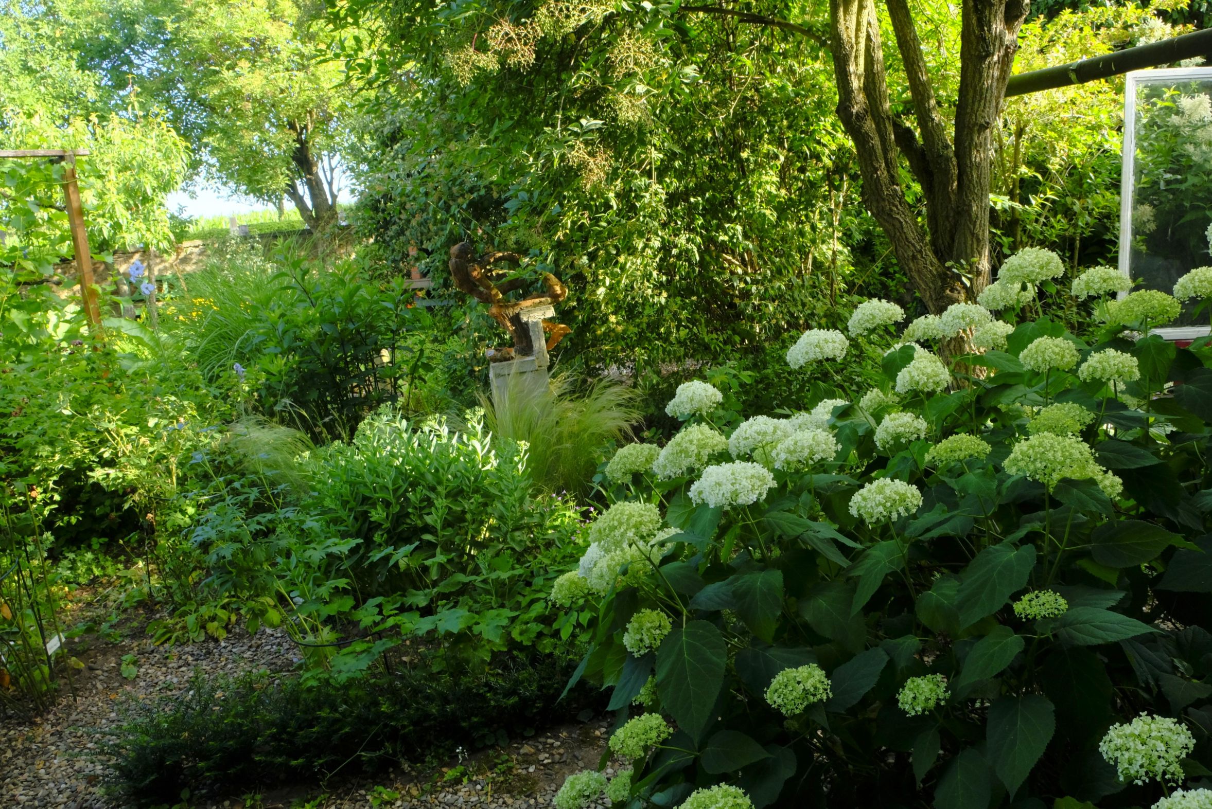 Das Kiesbeet in der Einfahrt hat sich seit Jahren bewährt, eine wahre Erleichterung für den Gärtner, was das Giessen betrifft.