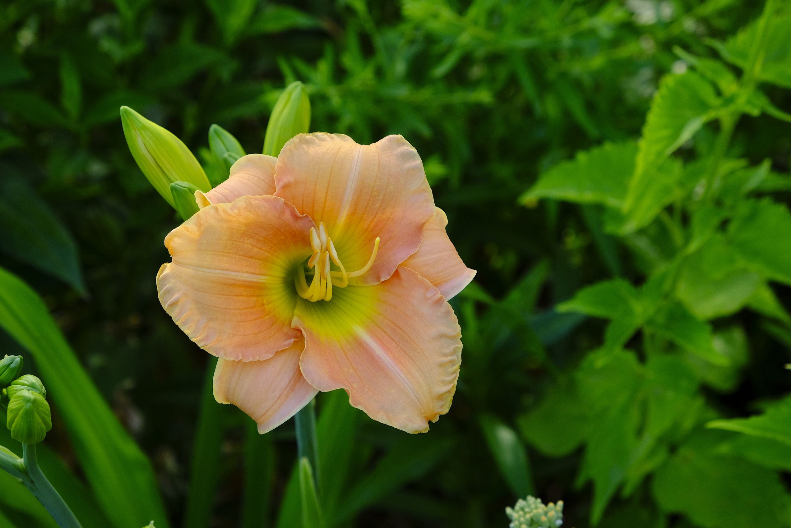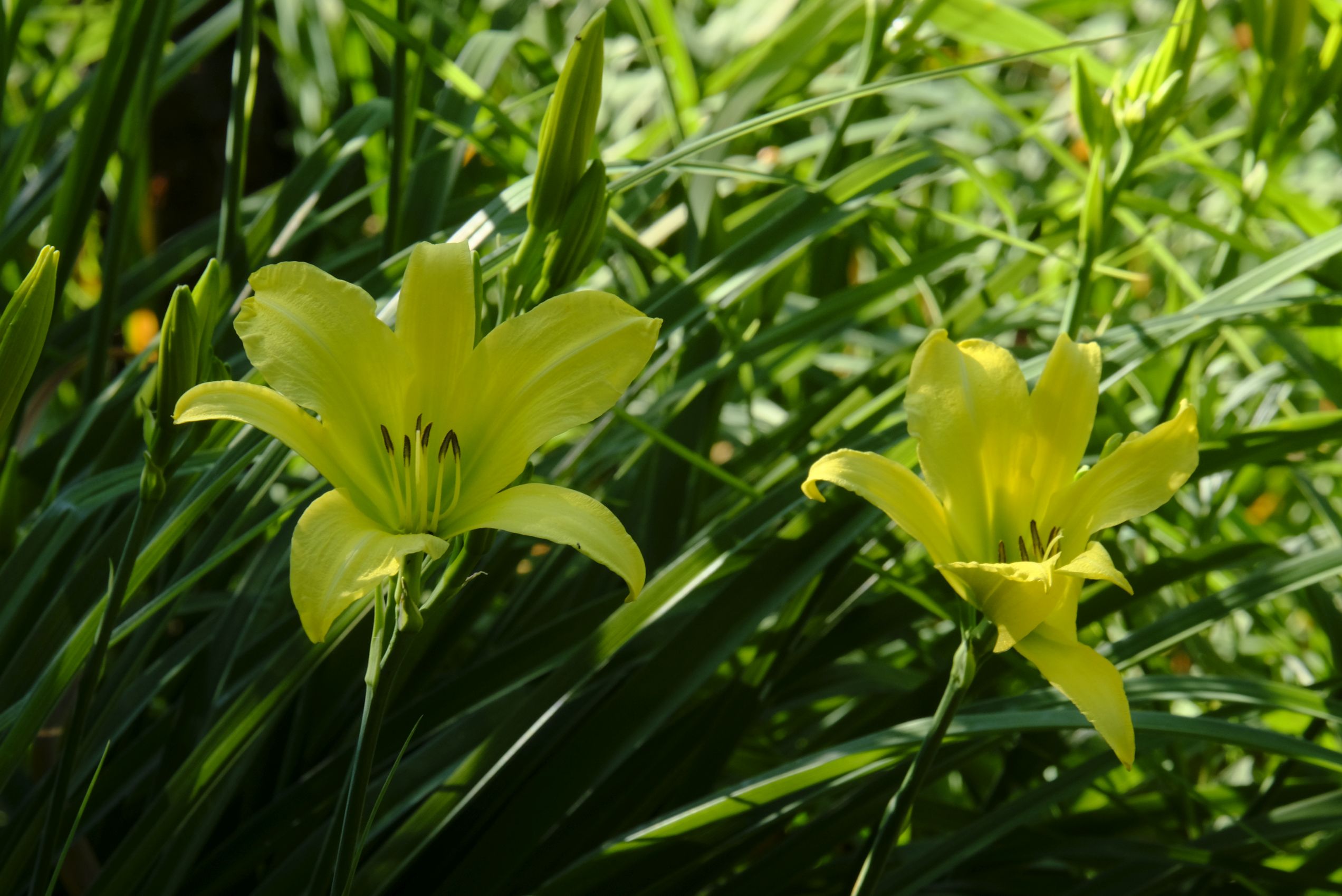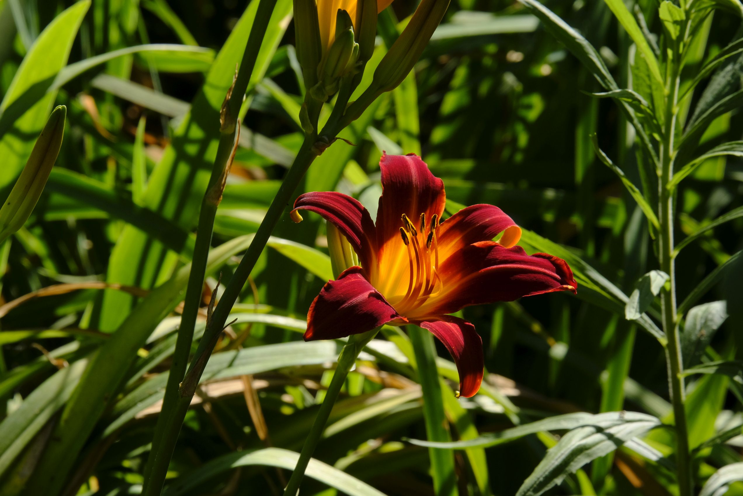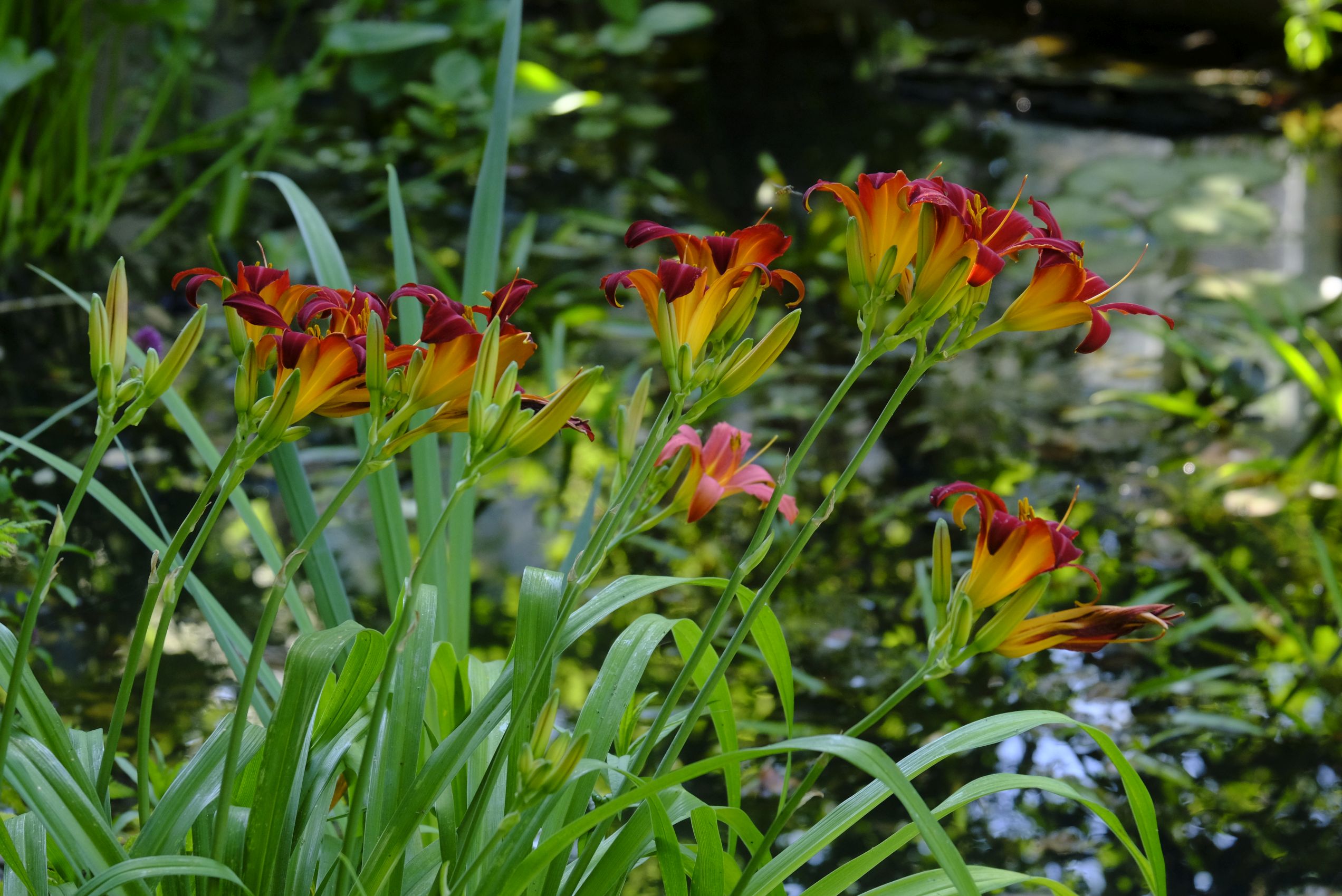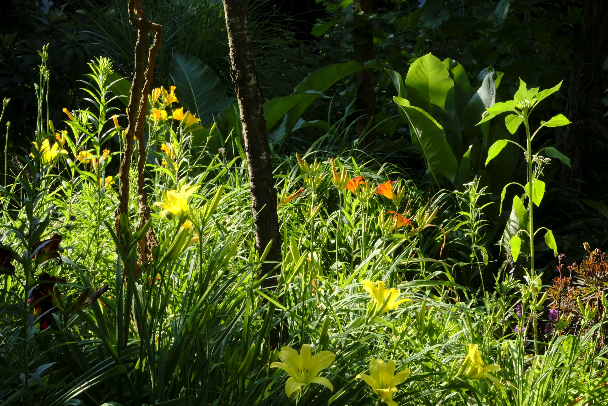 Im hinteren Garten haben nach den Iris, Pfingstrosen und Akeleien die Rosen prachtvoll und üppig geblüht. Jetzt folgen nach und nach die Taglilien, denen die Hitze offenbar nichts ausmacht. Auch farblich ergänzt sich das Gartenbild mit den aktuellen Temperaturen!