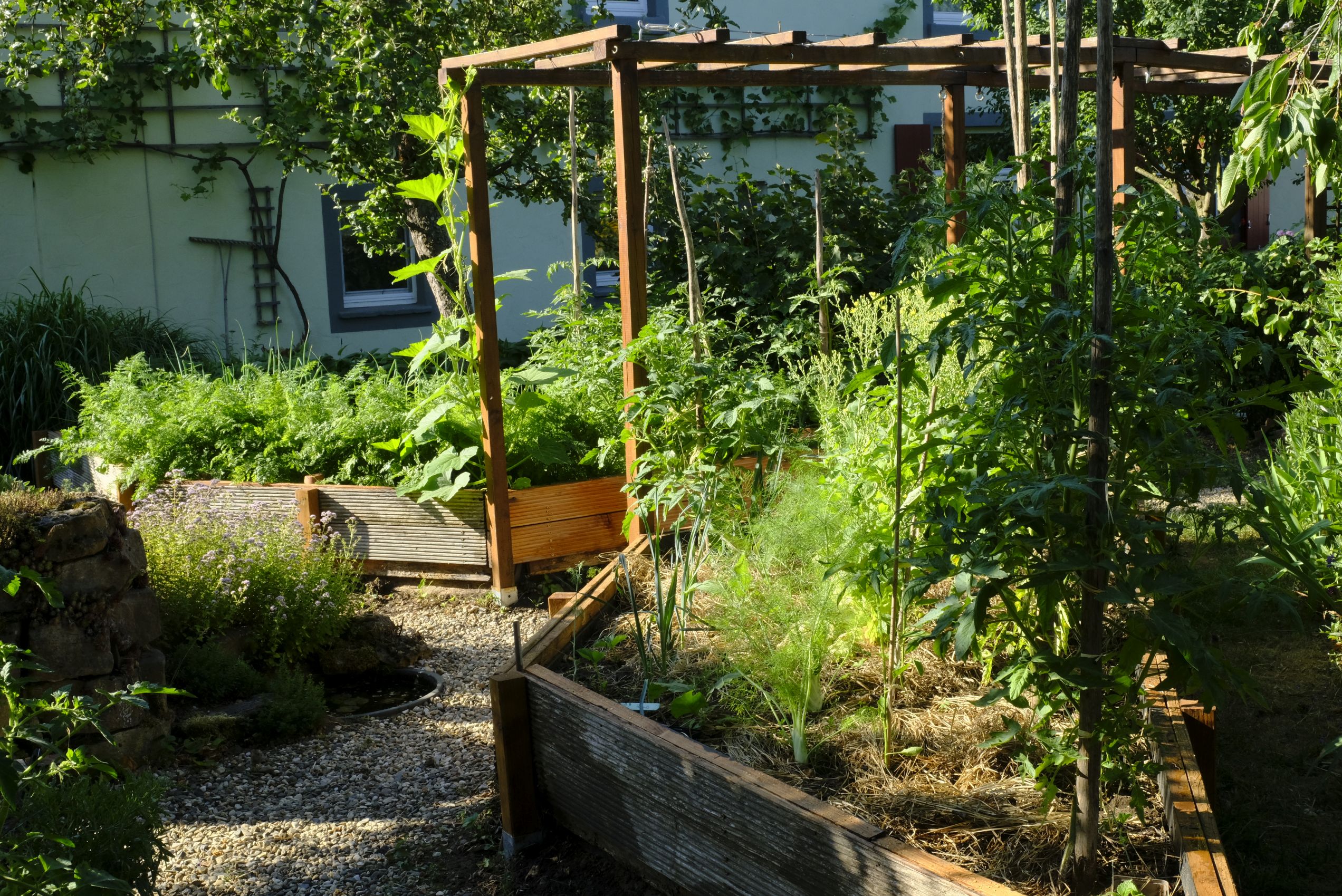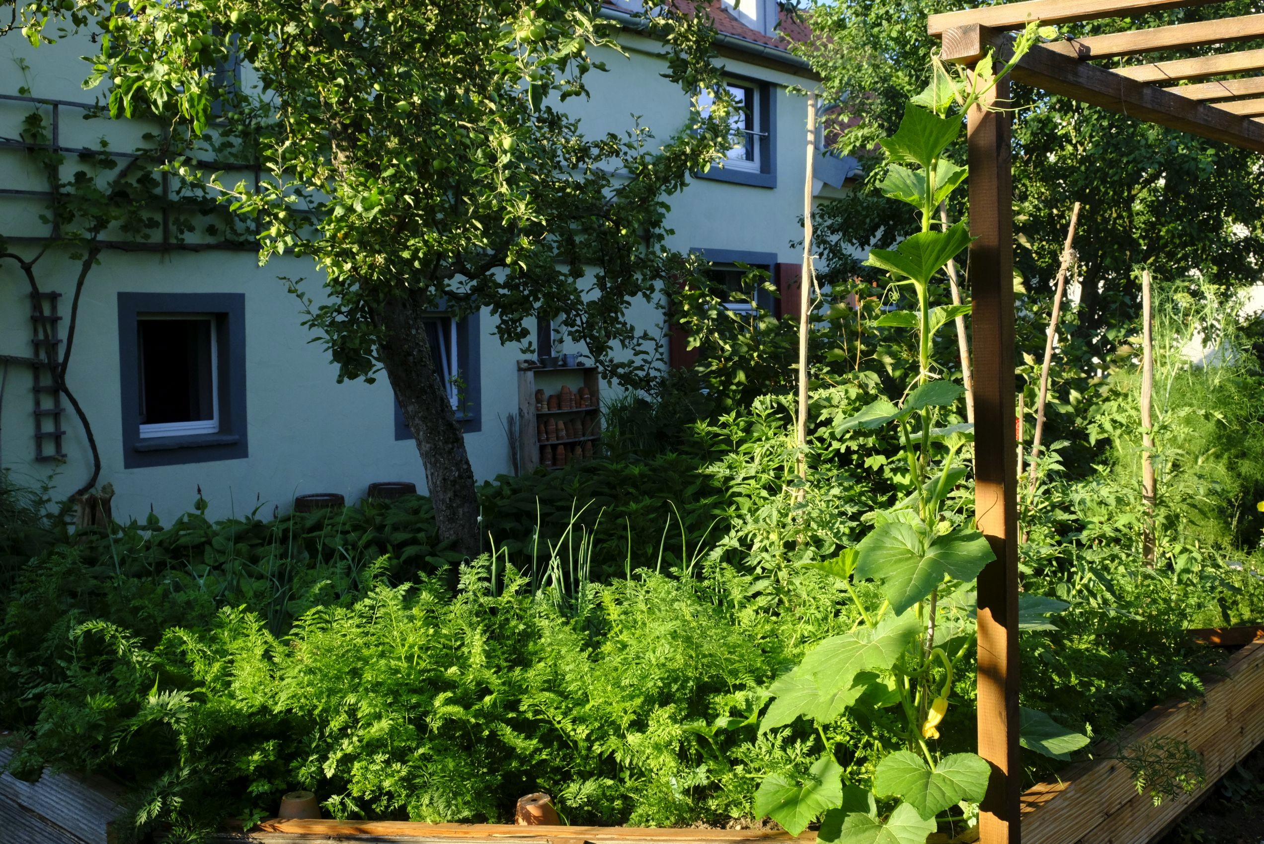Bisher haben wir unseren Küchengarten regelmässig frühmorgens gegossen und die Neupflanzungen bzw. Umpflanzungen mit Wasser versorgt. Dank der Regenwassertanks, in denen wir über den Winter das Regenwasser sammelten, können wir jetzt darauf zurückgreifen.