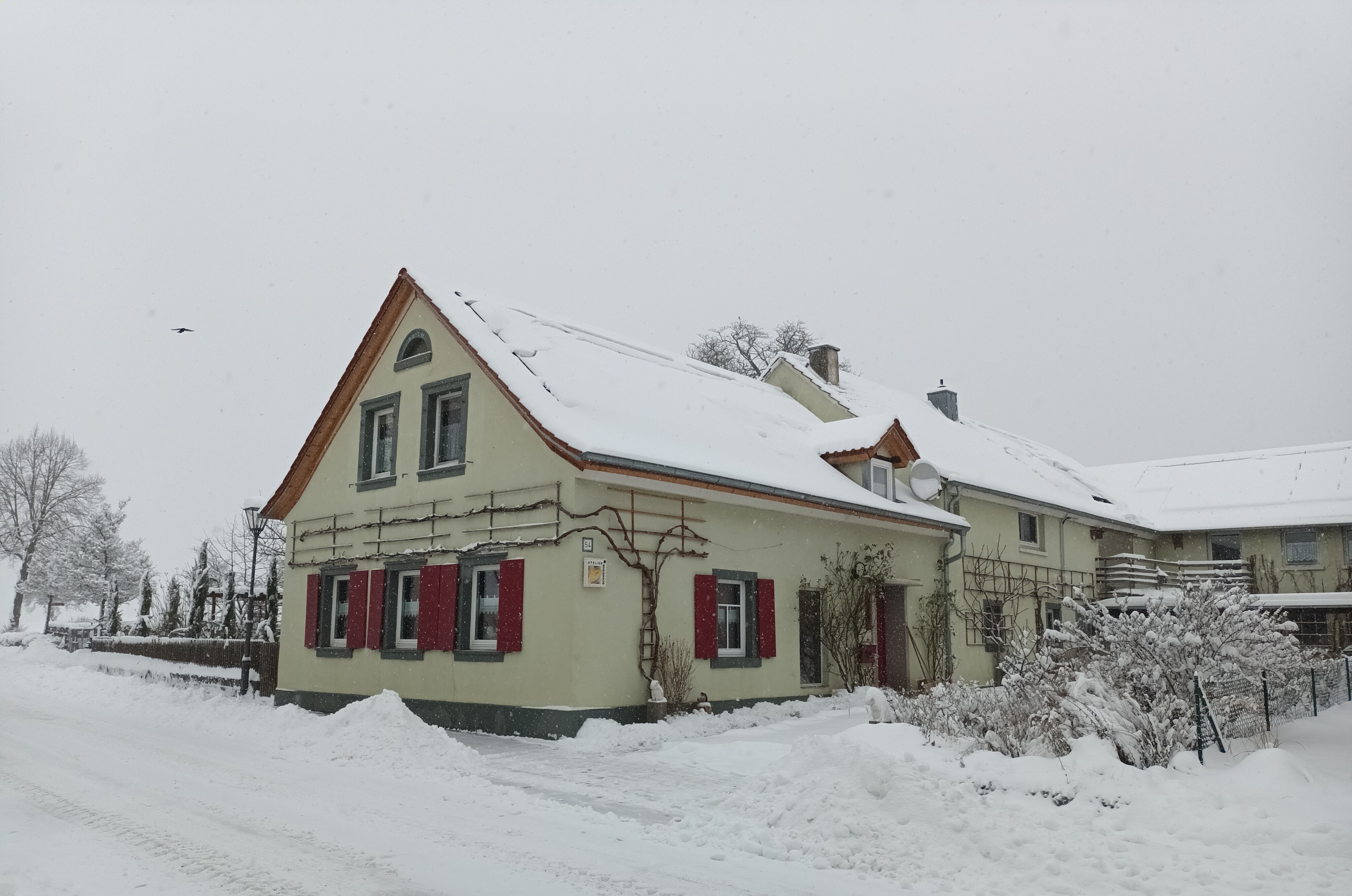 Wir sind im Nov. 2011 in unser Haus gezogen. 2012 war das Querbeet-Team bei uns. Da hat es so stark geschneit, dass abends die Autobahn gesperrt wurde.