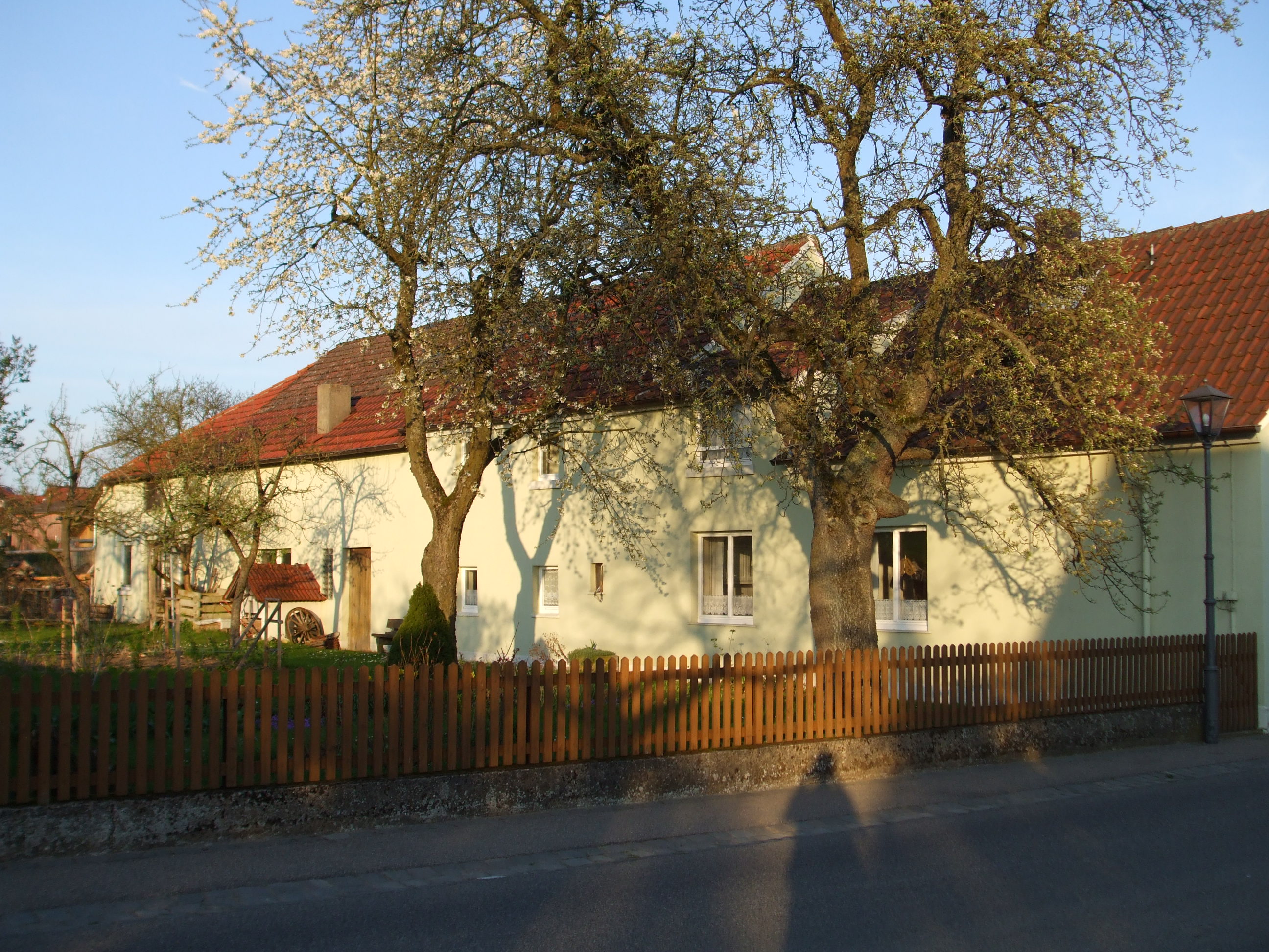 1. Das ist ja interessant, unser Haus im Vogelsberg ist genau so aufgebaut und gleich ausgerichtet. Das Wohnhaus nach Südwest, direkt daran Stallungen und Scheune und nach Südosten ein kleiner Anbau, der einmal Schweinestall war. (Welche Verwendung hatte denn euer Anbau?) Das ist im Vogelsberg die übliche Bauweise; wegen des rauen Wetters sagt man. Aber in Franken, wo es milder ist, war es offensichtlich auch üblich…